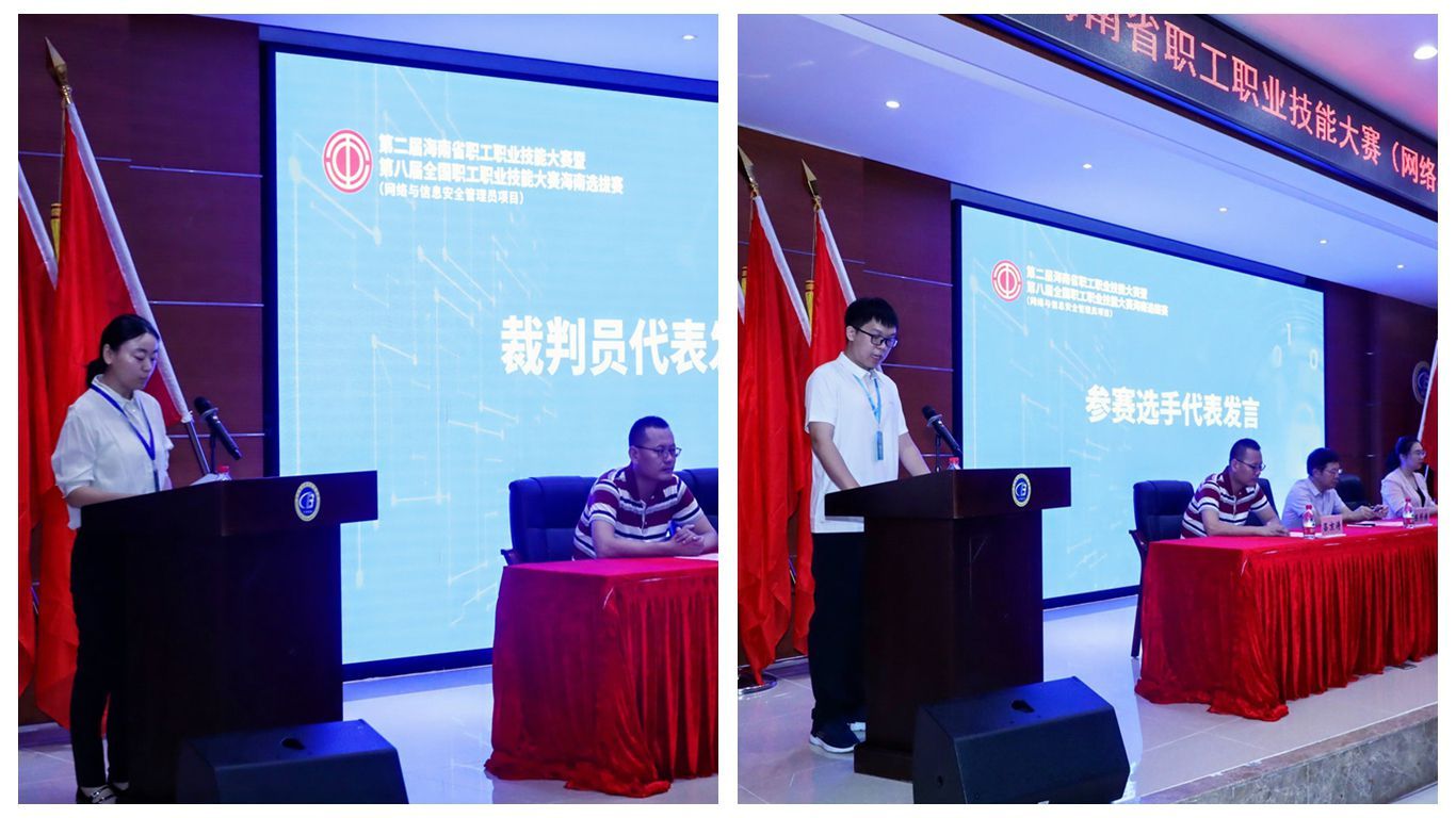 陈修焕向各位领导、嘉宾以及参赛选手们表示热烈欢迎和衷心感谢。他说,在数字化时代,网络和信息安全是国家安全的重要组成部分,也是推动经济社会发展的基础性、关键性力量。betway西汉姆联官网注重培养学生的创新意识和实践能力,鼓励学生积极参与各类技能竞赛,以赛促学、以赛促练,提升自己的专业技能和综合素质。本次比赛不仅能展现海南省职工在网络安全和信息技术领域的精湛技艺和良好风貌,更能推动海南技能人才队伍的整体素质提升,为海南经济社会高质量发展注入新的活力,进一步激发广大职工学习技能、钻研技术的热情,为海南自由贸易港建设贡献“技工力量”。