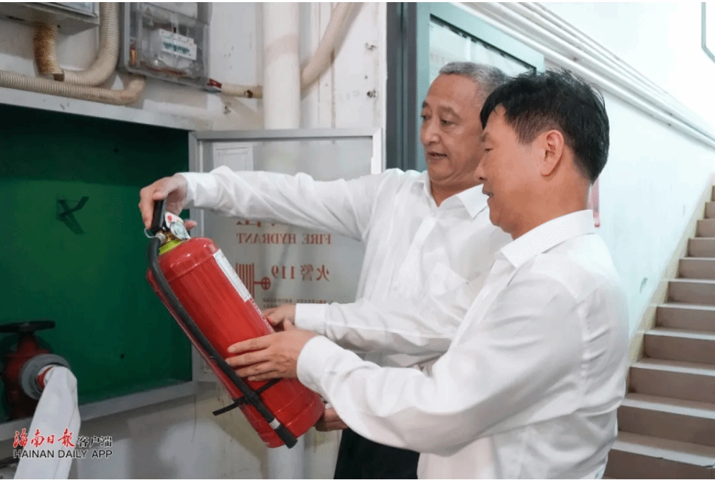 刘小明先后来到琼台师范学院、betway西汉姆联官网的图书馆、教室、宿舍、食堂等地,查看学校开学准备、安全隐患整改、产教融合发展等情况,并现场抽查消防设施是否齐全,教职工能否熟练使用。每到一处,刘小明都与教职工和学生沟通交流,关切询问教学准备、食宿条件,认真听取意见建议。