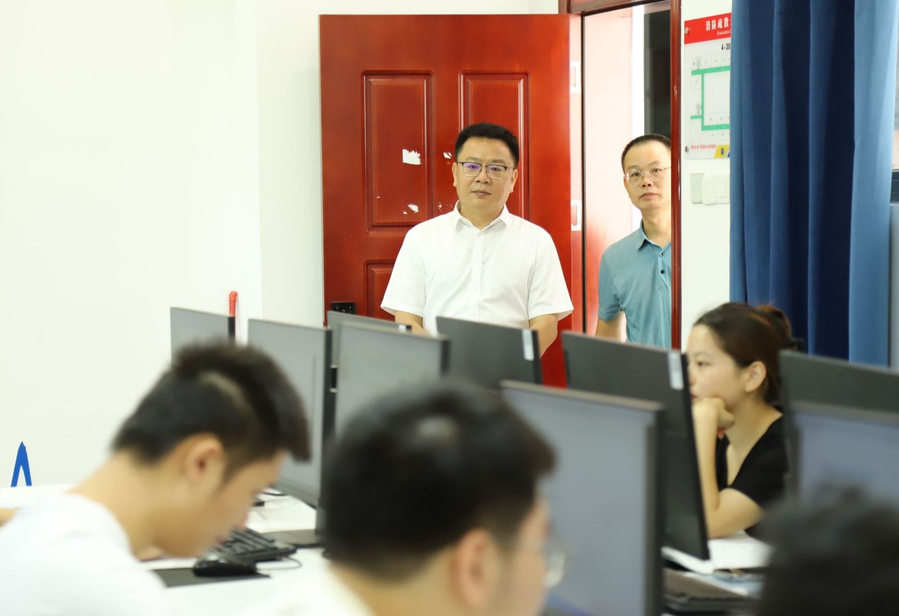 王华、崔昌华等校领导与各二级学院主要负责人深入交流,详细了解教师到岗、学生到课情况,对师生课堂精神面貌、课堂秩序、教学设施和教学服务保障等进行全面督查,不时驻足聆听教师的授课情况,观察学生的课堂表现,针对发现的问题和不足,督促相关部门和责任单位及时进行整改。校领导对新学期全校师生崭新的精神面貌和积极向上的学习工作热情表示充分肯定,强调各部门各单位要深入细致抓好教学质量监控,继续保持良好的教风学风,加强教学环境管理,紧盯校园安全,确保新学期各项教育教学工作有序有效运行。
