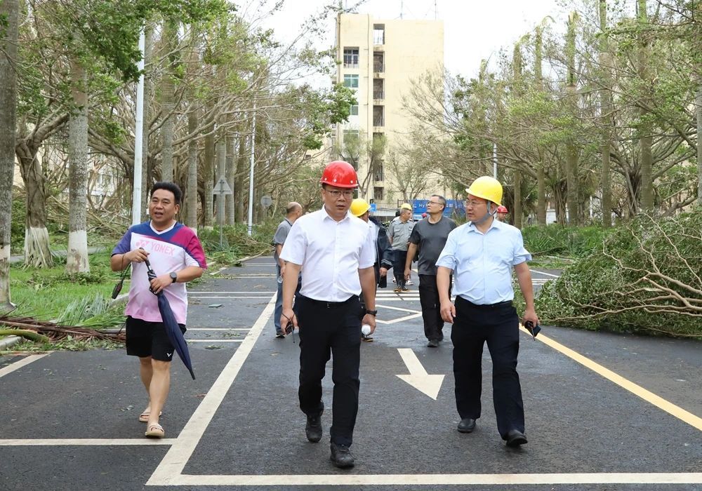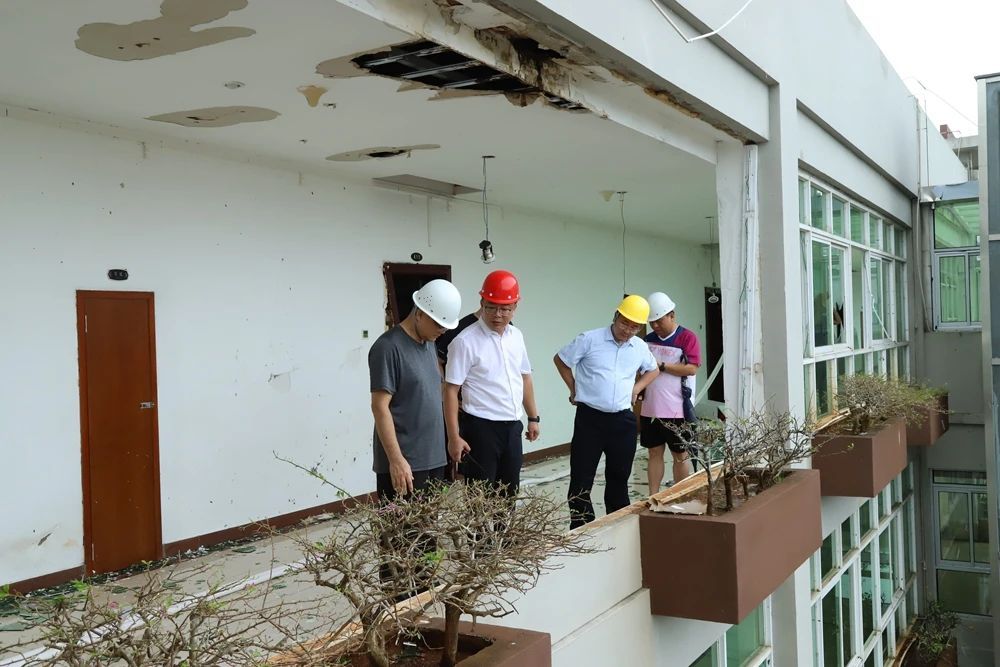 9月7日一早,学校党委书记王华、校长崔昌华带队深入学生宿舍区,详细了解学生人身安全情况;到学生食堂,督促保障学生供餐;到教学区、运动区、校道、教师公寓等各区域,全面掌握学校受灾情况。学校领导现场研究部署指挥救灾工作,强调要始终坚持人民至上理念,要精心组织动员,全力开展自救工作,充分发挥党支部战斗堡垒作用和党员先锋模范作用,凝心聚力、众志成城、攻坚克难,确保安全有序有效推进学生应急饮食供应、道路疏通、设备抢救、树木扶正和隐患管控等救灾重建工作,尽快恢复校园正常生活和教学秩序。
