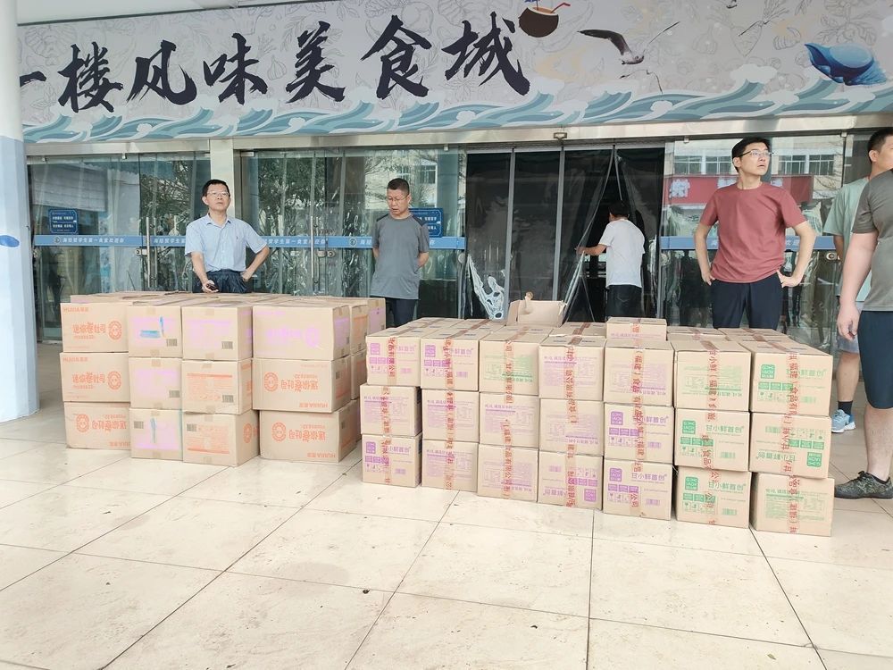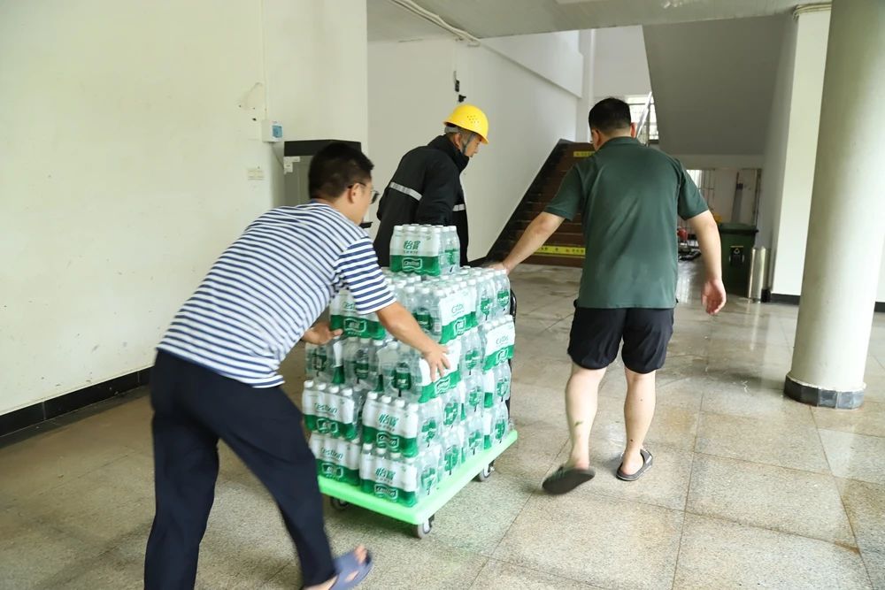 在学生食堂,学校克服停水停电的困难,组织学生食堂和整合各方力量,设法确保学生餐饮供应,将干粮和饮用水送到每位学生手上,并妥善安排当日晚餐,落细落实应急预案,充分做好后续用餐准备。