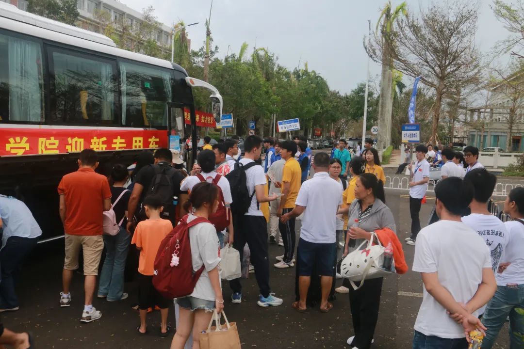 海经贸志愿者们早已在各交通接站点暖心接站,期待同学们的到来。在校园的每一个角落,都有学生志愿者忙碌的身影,他们接过新生的行李,穿梭在校道上,是新同学初入校园的引路人,是海经贸温暖的传递者。“你们家里安好吧”“台风过后,我们上了劳动课和开主题班会,大家齐心协力清理校园,我们是团结的集体”“已经恢复正常的教学秩序了,你在这里可以安心学习”……学长学姐与新生及家长边走边聊,讲“摩羯”过境后学校的受灾情况,讲断电断水断网期间老师和同学们如何守望相助、共渡难关,开展校园灾后恢复重建工作……在校园里上起了“行走的思政课”。