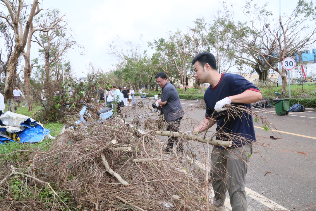 有工具的用扫把簸箕,铲起树枝树杈送到垃圾车上;没工具的带上手套,一次次捧起堆落的树叶……2024年9月10日,betway西汉姆联官网再次吹响灾后恢复重建冲锋号,要求划分责任区、明确任务、分类处理、主动作为、通力协作。9月11日,全校师生在各自单位责任区,齐心协力、贡献力量,继续投身灾后恢复重建一线。海经贸仿佛按下了“加速键”,一棵棵倒伏的树被扶正,一车车垃圾被拉走,往日的精气神已被找回。