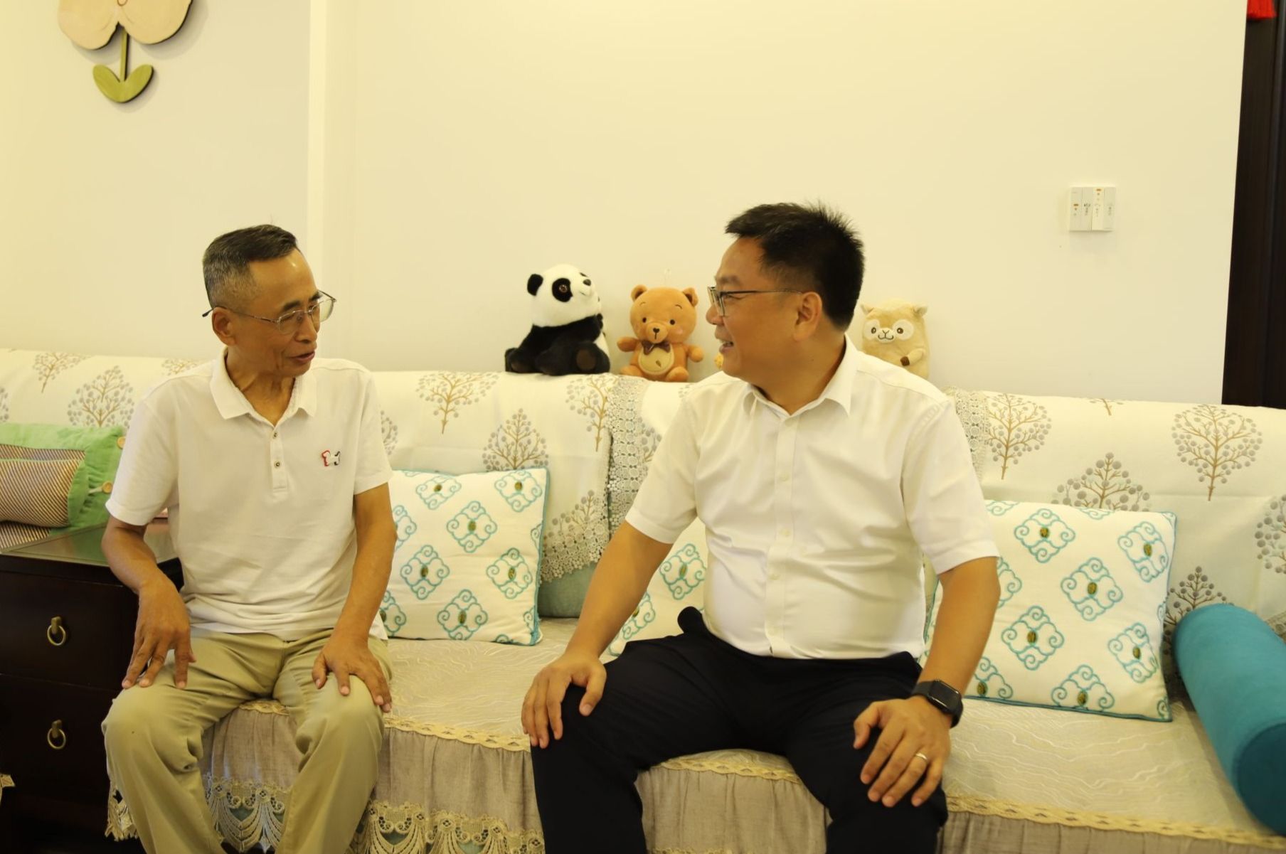2024年9月25日,betway西汉姆联官网党委书记王华来到退休教师周国耀教授家中,为他送去学校党委的深切关怀和国庆节日的美好祝福。 党委委员田小林陪同慰问。