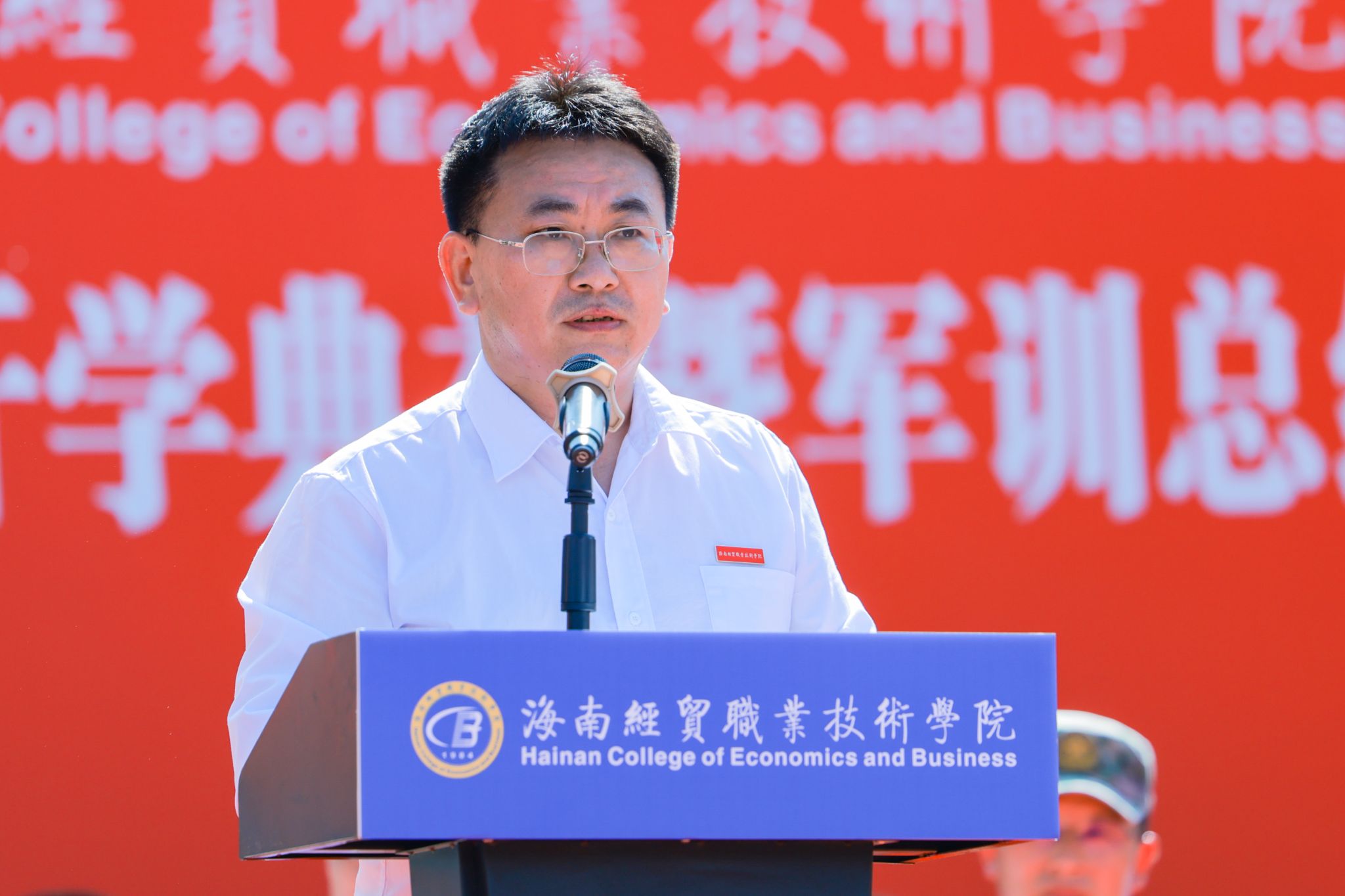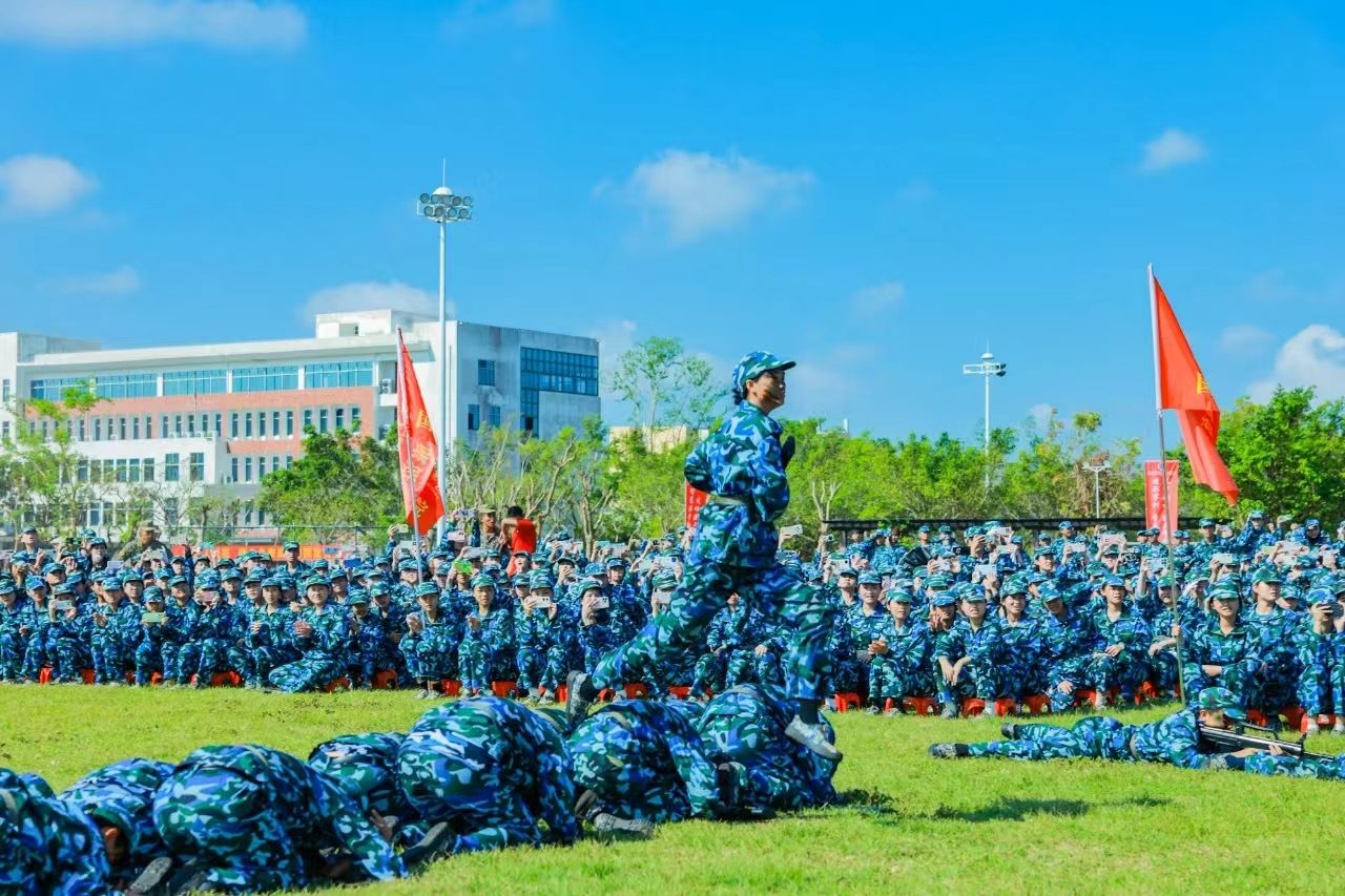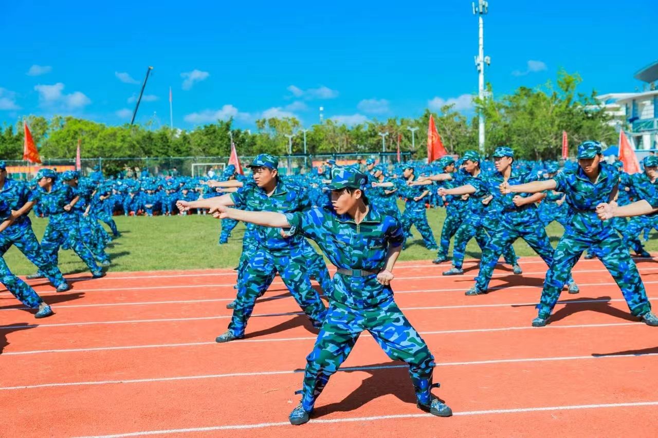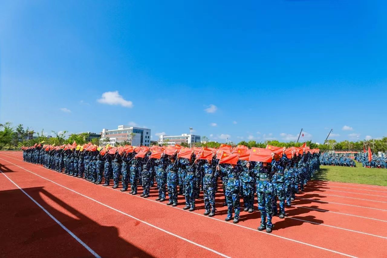 崔昌华向全体新同学表示热烈欢迎,向辛勤付出的承训教官及教职员工致以崇高敬意和诚挚感谢。他说,台风“摩羯”给学校带来了严重破坏,但全体海经贸人众志成城、共克时艰,以团结的意志和坚毅的品格克服重重苦难,实现如期迎新、按时复学,这些精神财富是送给新生们最宝贵的“开学礼物”。他回顾了海经贸的建校历史和近年来取得的成绩,希望同学们把青春的热忱倾注到今天,在蓬勃发展的海经贸堂堂正正地成长成才。他深情寄语新生,一要挺膺担当,立稳报国强国的“鸿鹄志”。牢固树立起为祖国、为人民奋斗奉献的崇高志向,让青春年华在中华民族伟大复兴的新征程上焕发更加绚丽的光彩。二要拥抱理想,敢做仰望星空的“追梦人”。不自我怀疑、不轻易言弃,相信“相信”的力量,在追逐梦想的过程中,发现人生最美的风景。三要追求卓越,当好脚踏实地的“奋斗者”。保持独立思考,扎稳立身立业之根,练就过硬本领,为未来的发展创造更大空间。四要砥砺身心,成为全面发展的“栋梁材”。明天是中华人民共和国七十五周年华诞,我们要感谢先辈们创造的美好生活,增强忧患意识,提高政治觉悟,继续发扬军训培塑起来的良好作风,真正成为德智体美劳全面发展的社会主义建设者和接班人。