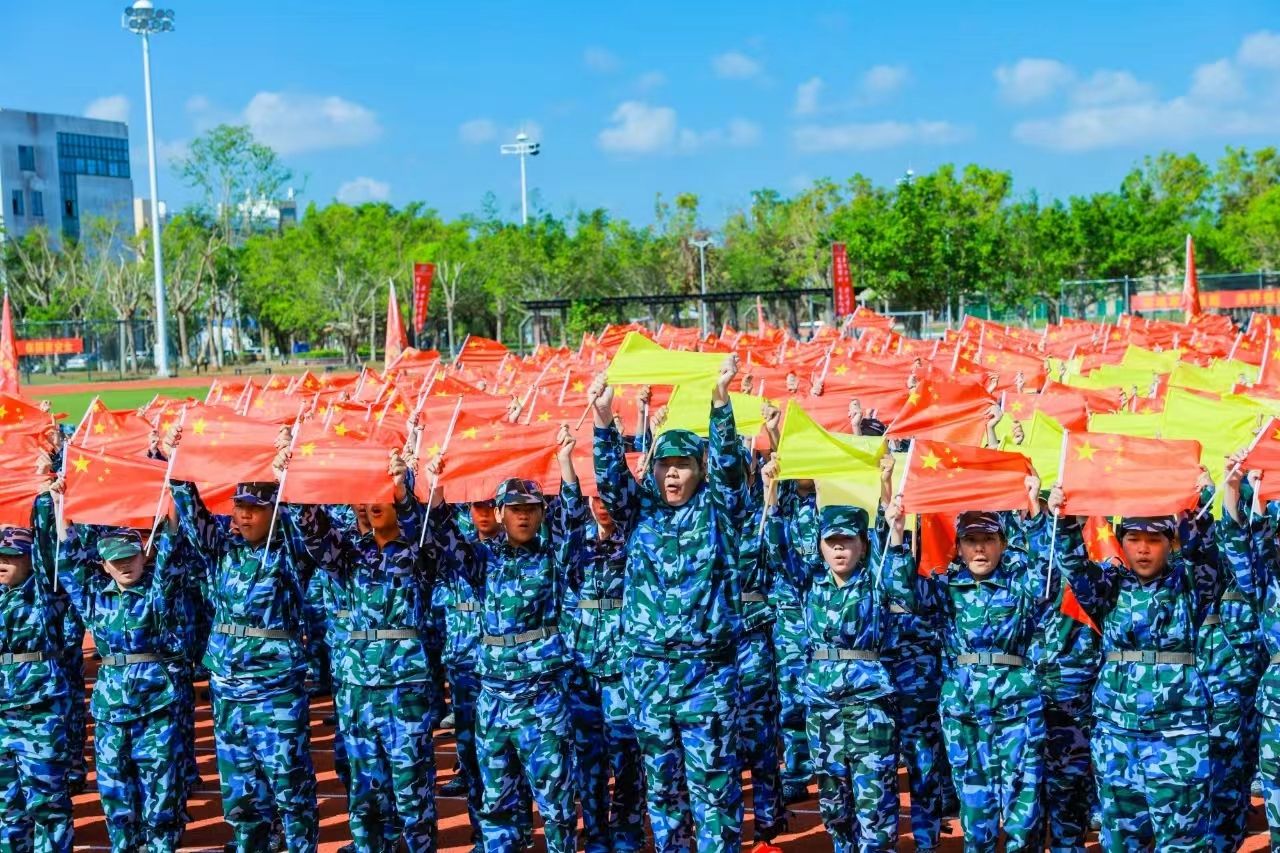 激昂的国歌旋律响起,全体师生庄严肃立,齐唱国歌。2024级新生开学典礼暨军训总结表彰大会正式拉开帷幕。