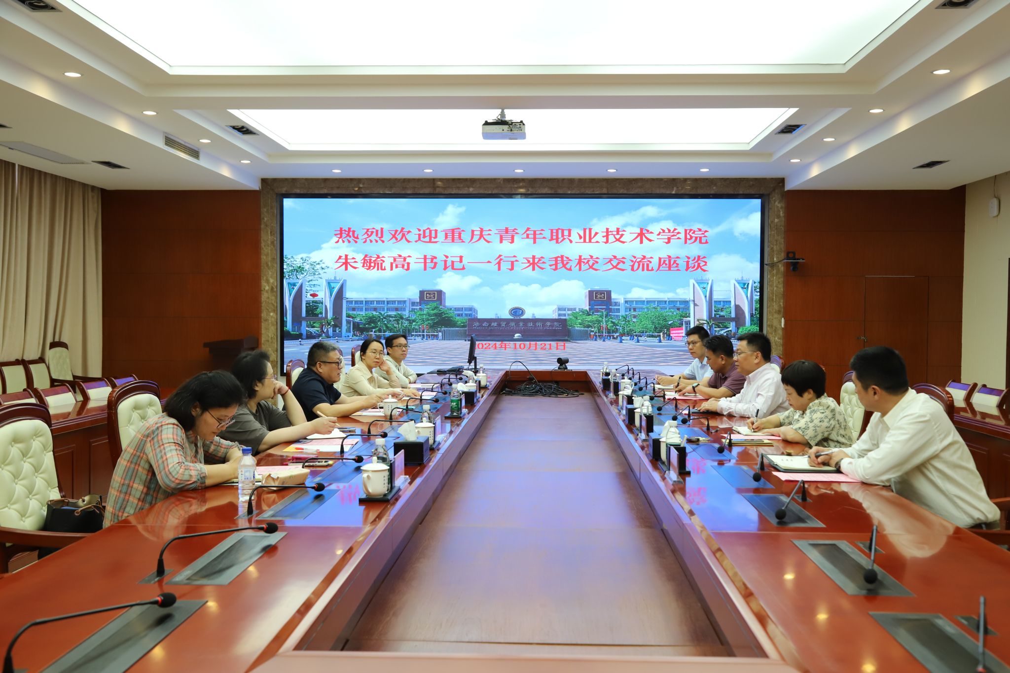 2024年10月21日,重庆青年职业技术学院党委书记朱毓高,党委委员、副校长杨娟一行5人来到betway西汉姆联官网,就推进产教融合、专业群建设等相关工作进行交流。学校党委书记王华,党委委员、副校长万力维热情接待了朱毓高一行。
