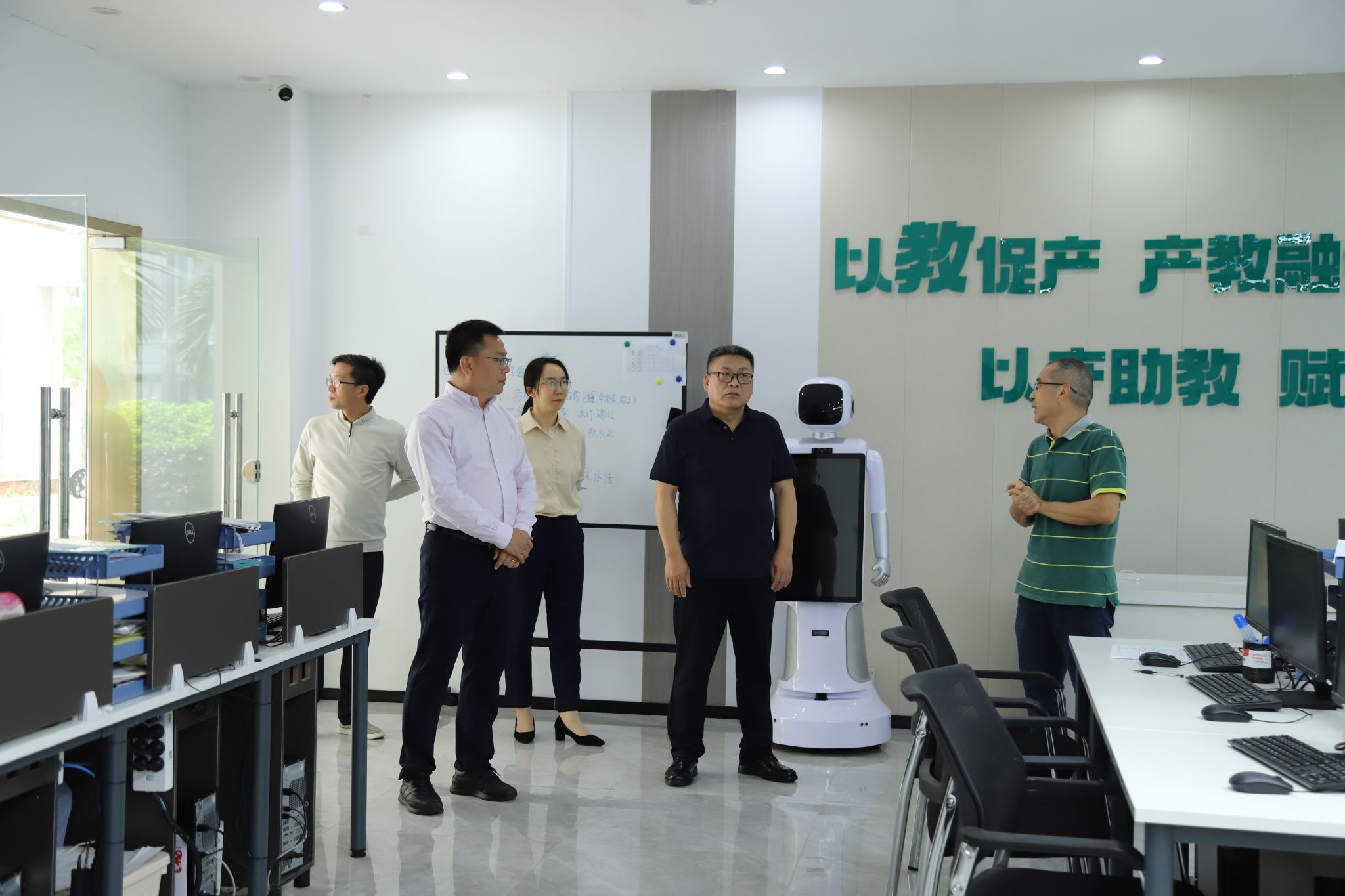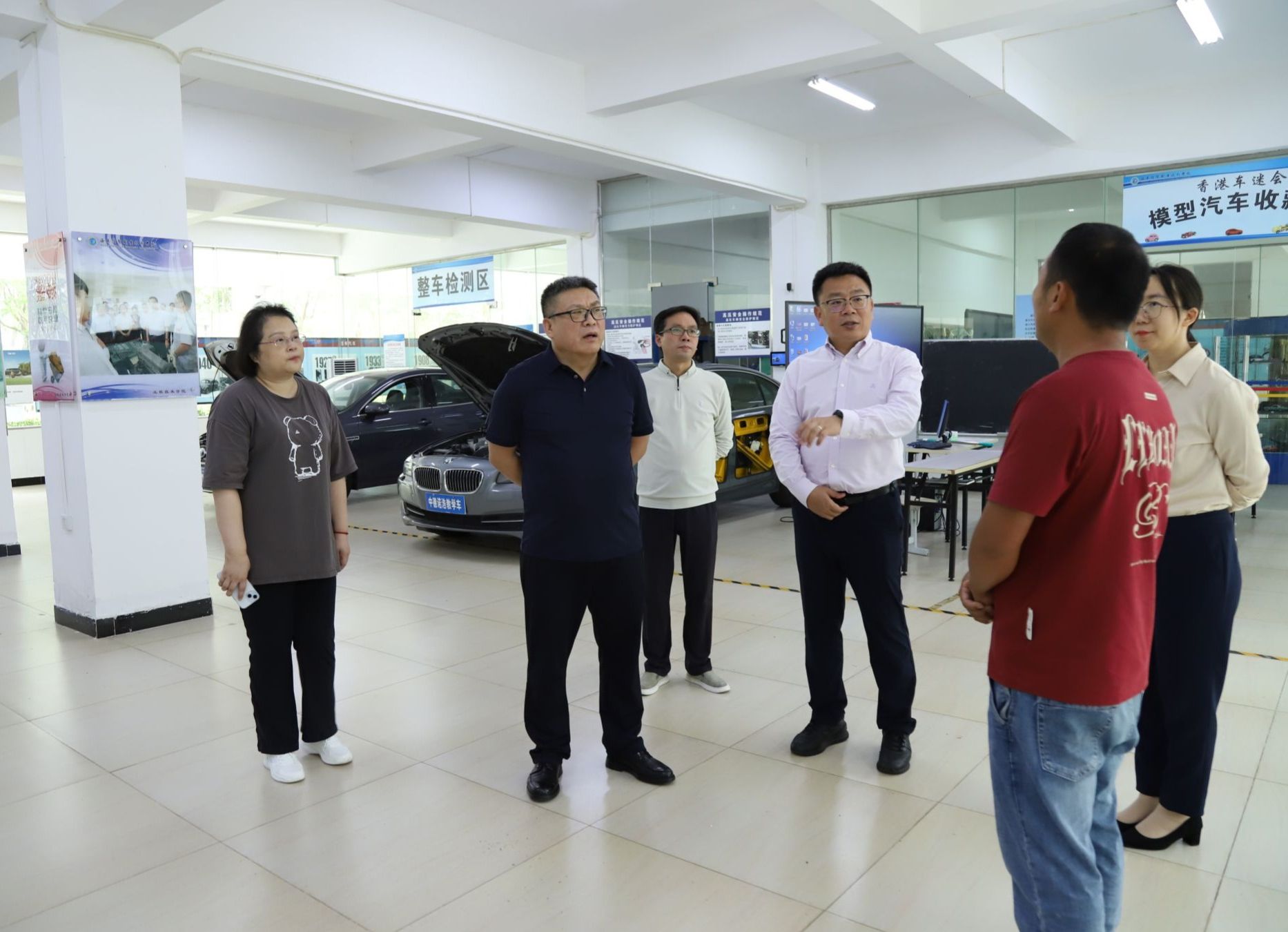 王华陪同朱毓高一行参观校园,先后来到数智财务产教融合实践基地、智慧旅游产教融合实训基地、汽车检测与维修实训中心、新一代信息技术ICT产教融合基地和图书馆,介绍了学校近年来改革发展和“双高”建设取得的成绩。
