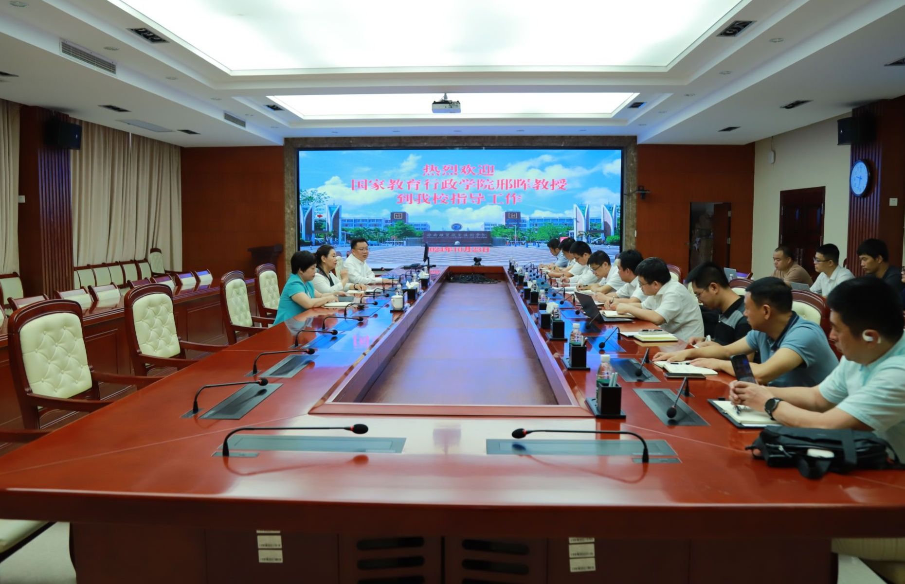 2024年10月23日,国家教育行政学院学术委员会主任、职业教育研究中心主任邢晖教授来到betway西汉姆联官网,就学校“双高”建设等相关工作进行指导。学校党委书记王华,党委委员、副校长万力维出席座谈会。