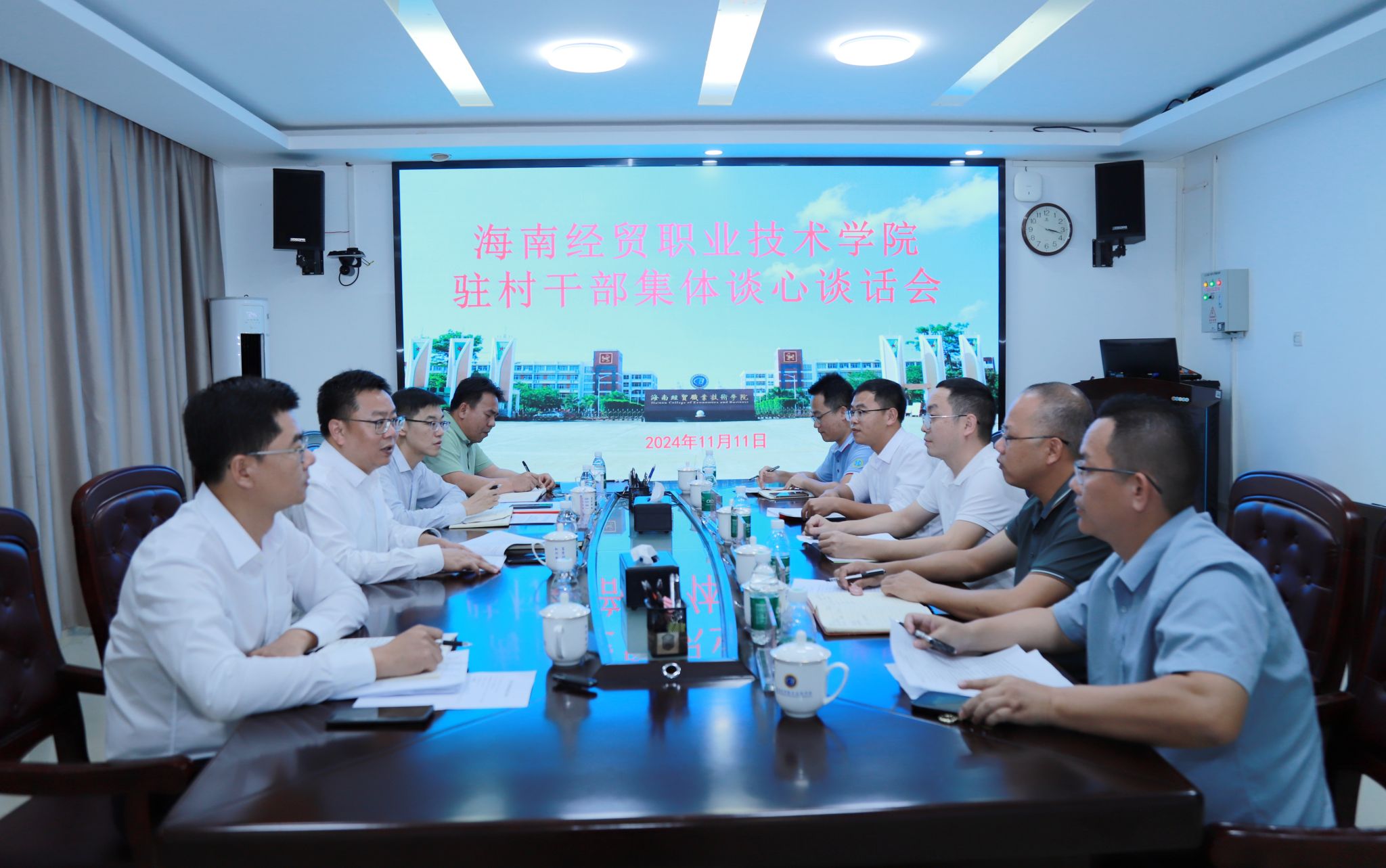 2024年11月11日,betway西汉姆联官网召开乡村振兴驻村干部集体谈心谈话会。学校党委书记王华,党委委员田小林、方天海与各乡村振兴驻村干部亲切座谈,详细了解各驻村干部的工作生活情况,并与他们进行深入交流。
