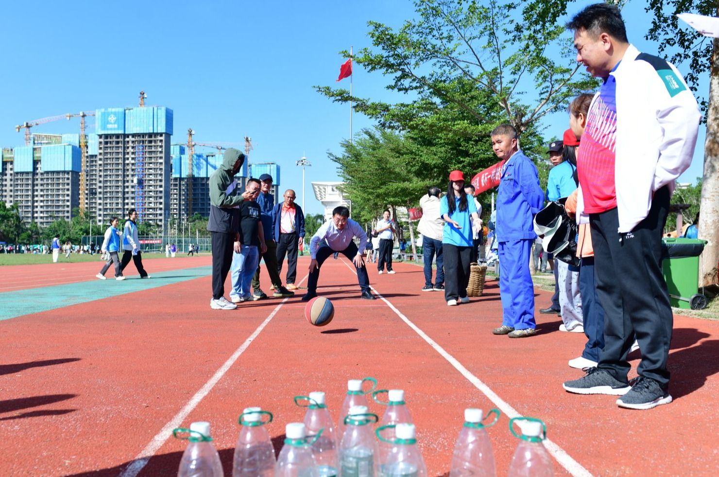 崔昌华校长参加教工男子组滚球碰准比赛