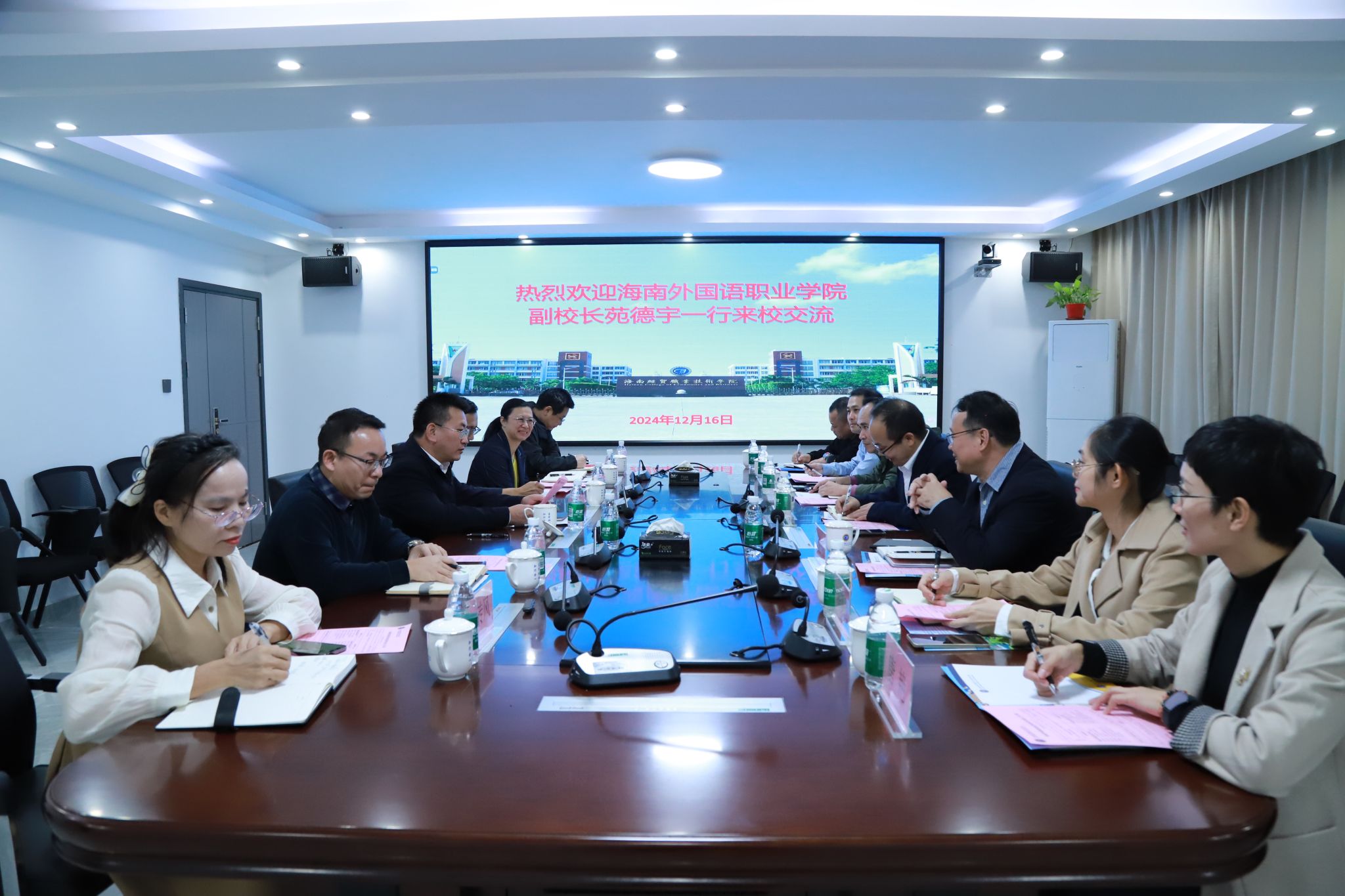 2024年12月16日,海南外国语职业学院副校长苑德宇一行7人来到betway西汉姆联官网,就毕业生就业、创新创业教育等工作进行交流。学校党委副书记、校长崔昌华热情接待了苑德宇一行。
