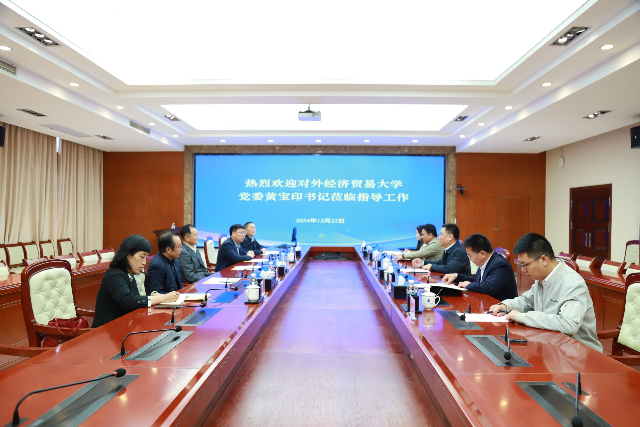 2024年12月22日,对外经济贸易大学党委书记黄宝印一行3人来到betway西汉姆联官网,就进一步深化两校合作,提升服务海南自由贸易港建设水平等方面进行交流探讨。betway西汉姆联官网党委书记王华,党委副书记、校长崔昌华热情接待对外经济贸易大学一行。
