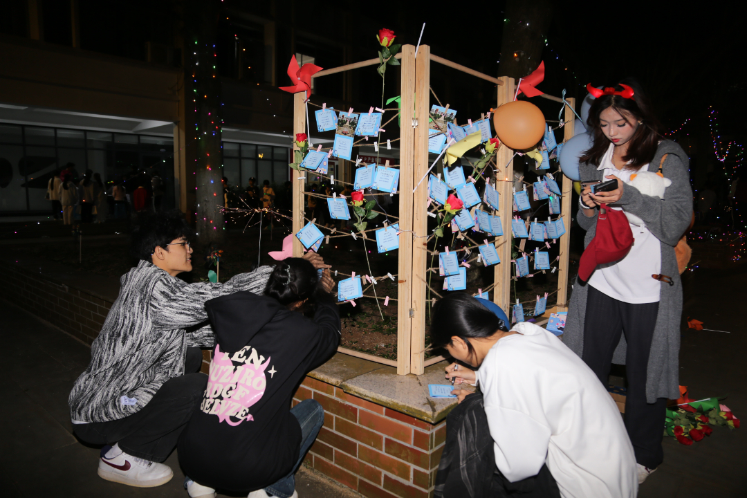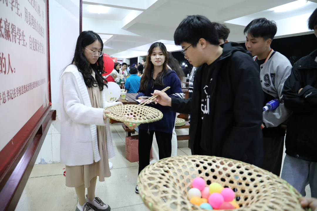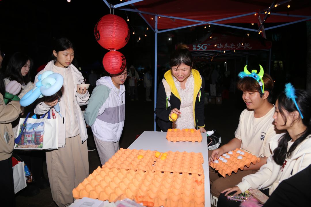 活动现场张灯结彩,节日气氛热烈而浓厚,处处彰显着传统文化的独特魅力。“哇!我砸中了”“一、二、三,瞄准,投”“天哪!我竟然套中了”“这个灯谜也太难了吧” ……校团委、各二级学院以及学生社团设置的各个摊位前人潮涌动、热闹非凡,一系列精心设计、兼具趣味与文化底蕴的互动项目吸引着老师同学们踊跃参与。每个游戏项目前都排起了长队,大家乐此不疲地“四处征战”,在欢声笑语中挥手告别2024。