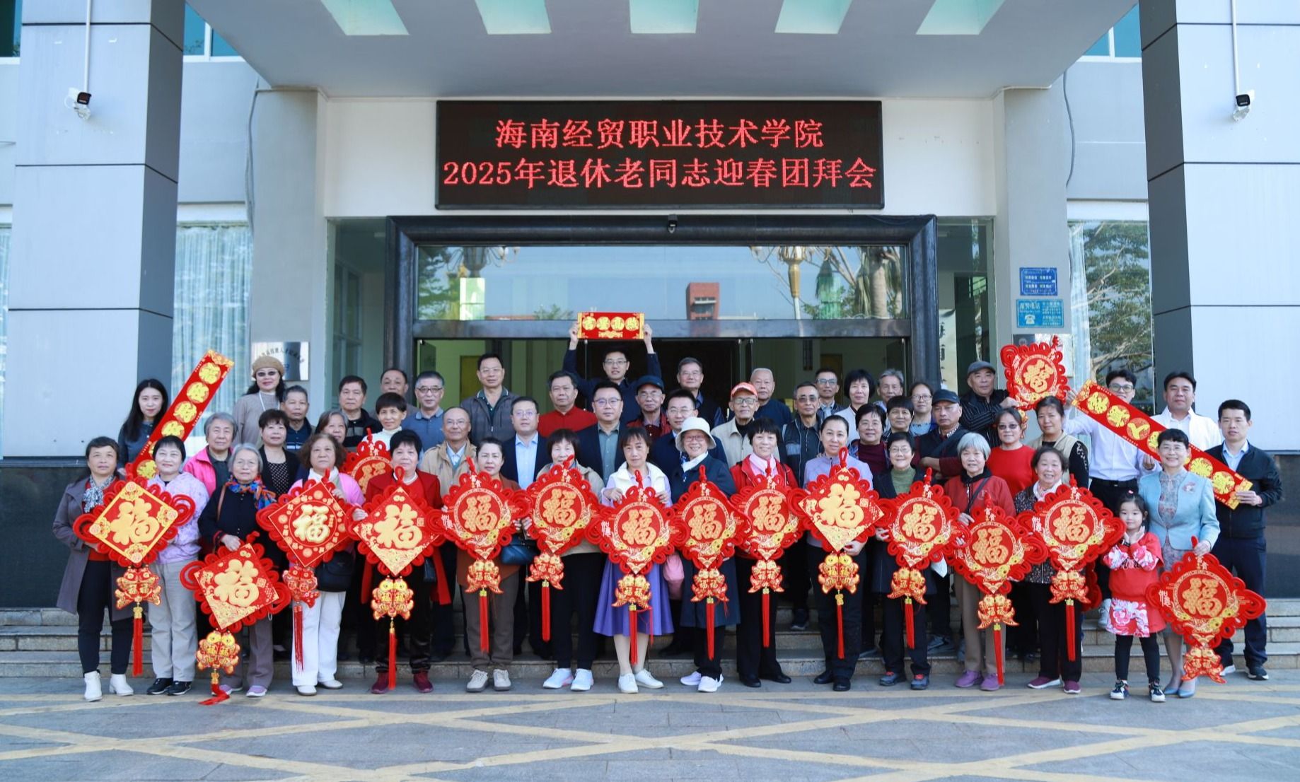 张灯结彩、喜气洋洋,红红火火、热闹非凡。在春节来临之际,1月21日,betway西汉姆联官网58位退休老教师回到美丽的校园,共迎新春佳节。学校党委书记王华,党委副书记、校长崔昌华,党委委员、副校长李厚永,党委委员田小林与退休老同志们欢聚一堂,回忆海经贸发展历史,共叙学校近年来取得的成绩,展望美好发展前景,为老同志们送上节日祝福。