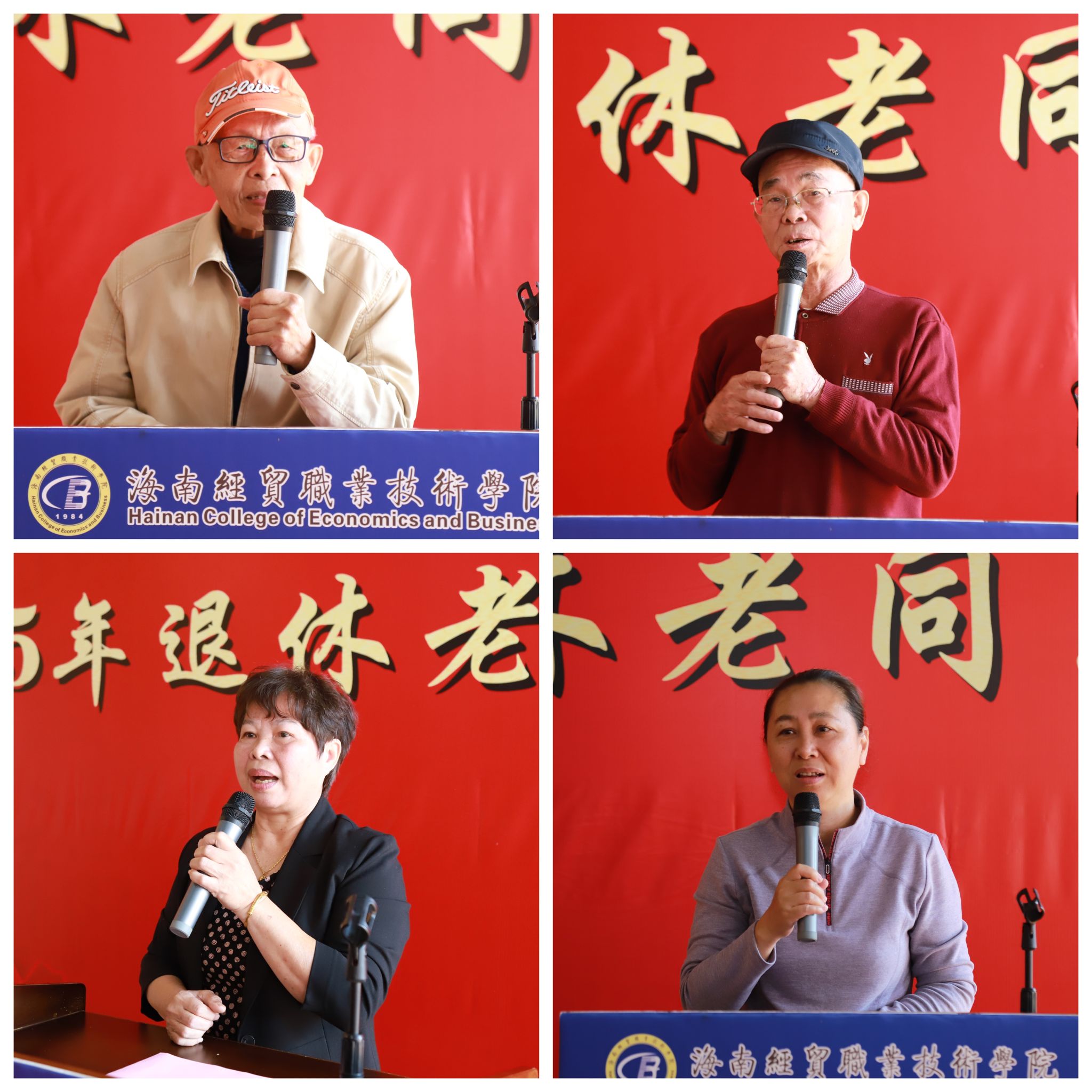 在交流环节,“50后”“60后”“70后”“80后”的退休教职工杜琼、黄慧娟、林长武、蔡奕琦分别回忆了在学校的工作和奋斗历程,分享了退休后的生活和感受,对学校一如既往对退休老同志的关心和用心,全校涉老部门深入细致为老同志做实事、解难事表示由衷的感谢,对2025年及未来学校的建设发展充满期望。他们纷纷表示,海经贸是大家共同的家园,此次团拜会深切感受到学校的关怀与温暖,也更加坚定了为学校建设发展发挥余热的信心和决心。