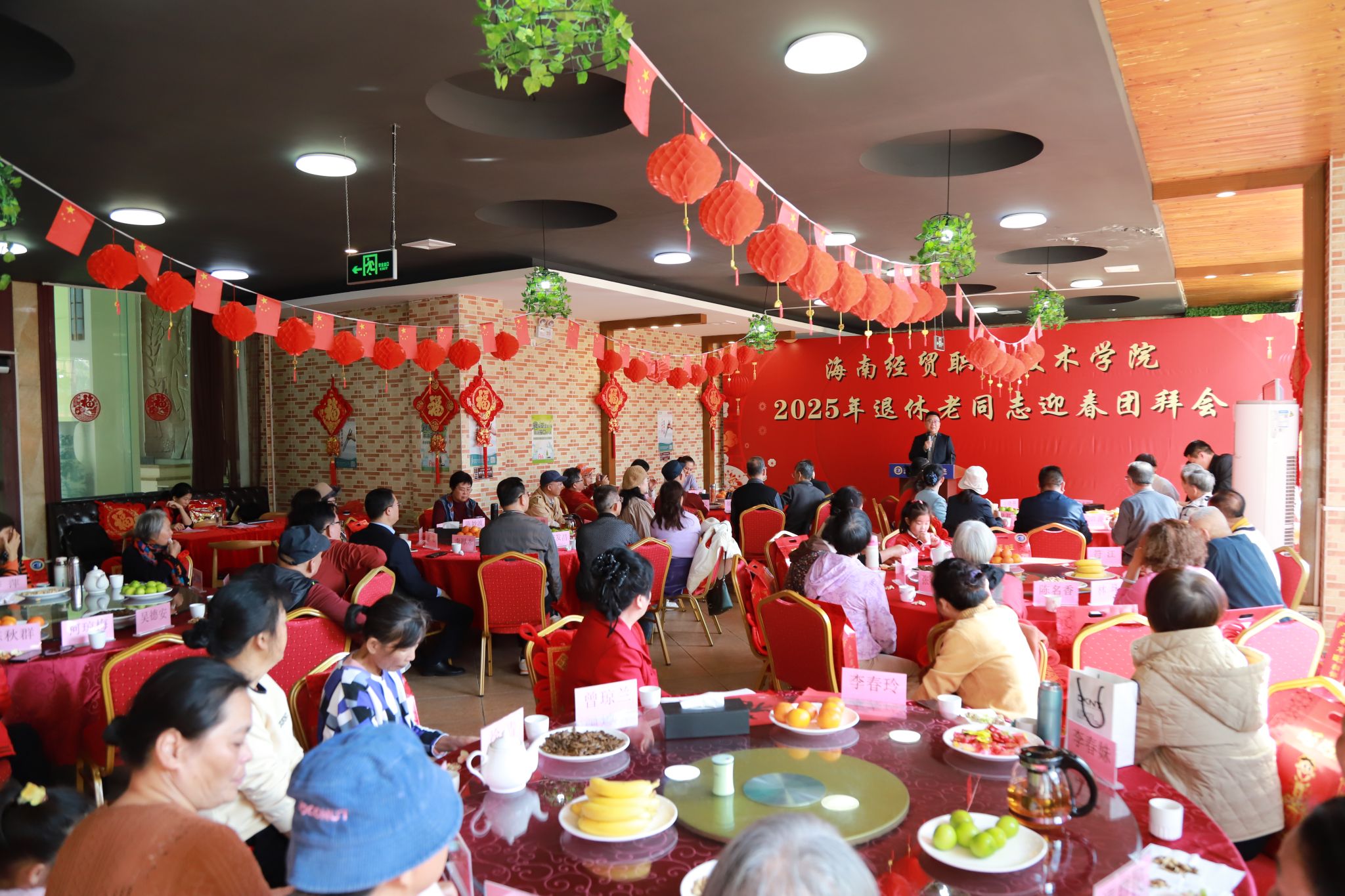 团拜会在欢快喜庆的乐曲和其乐融融的氛围中拉开帷幕。王华向全体退休老同志致以诚挚的问候和美好的祝福。他回顾了过去一年学校所取得的成绩,充分肯定了学校关工委继续发挥“银发”智慧所取得的优异成果。他说,树高千尺总有根,吃水不忘挖井人。学校各项事业的发展成果离不开在座老同志们的关心关注和鼎力支持。新的一年学校将以申报“新双高”和申办本科职业大学为主线,进一步凝心聚力、砥砺奋进,为早日建成具有国际影响力的中国特色高水平职业技术大学而不懈奋斗,为教育强国建设贡献海经贸力量。