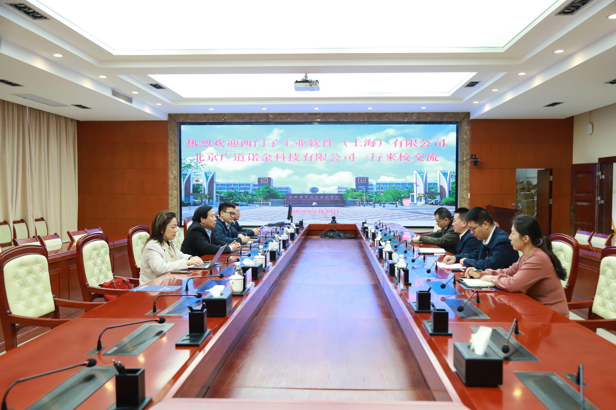 2025年1月22日,西门子工业软件(上海)有限公司副总裁张雁、北京广道诺金科技有限公司副董事长吴继伟一行4人来到betway西汉姆联官网,就深化产教融合、校企合作,推动工业数字化转型升级等方面工作进行交流座谈。学校党委副书记、校长崔昌华热情接待了张雁一行。