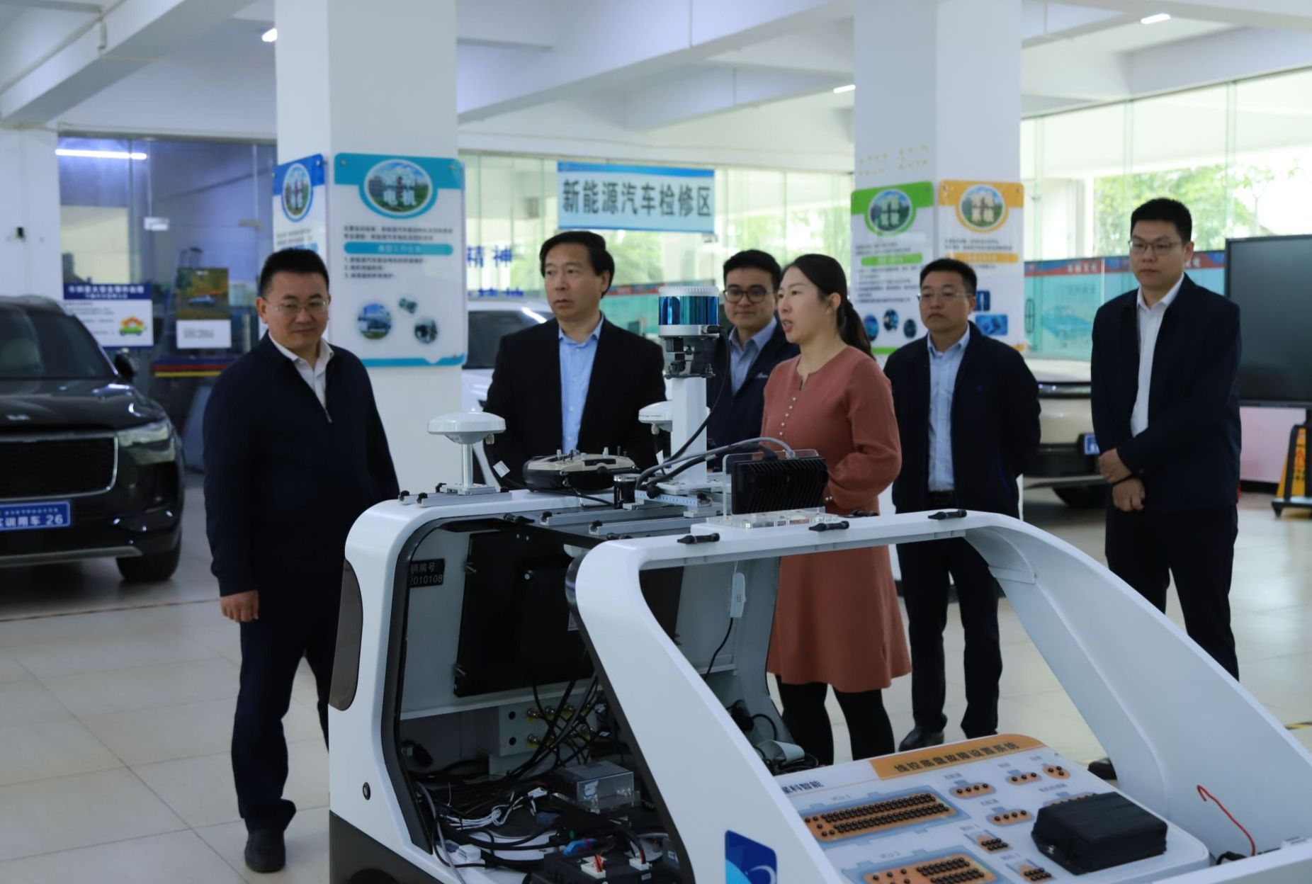 在崔昌华的陪同下,张雁一行参观考察校园,了解海经贸建校历史、人才培养、产教融合、国际合作、“双高”建设和本科职业大学申办的有关情况;在汽车检测与维修实训室中心、数智财务产教融合实践基地和新一代信息技术ICT产教融合基地,听取有关负责人介绍专业发展、校企合作的相关内容和近年来人才培养取得的成绩。