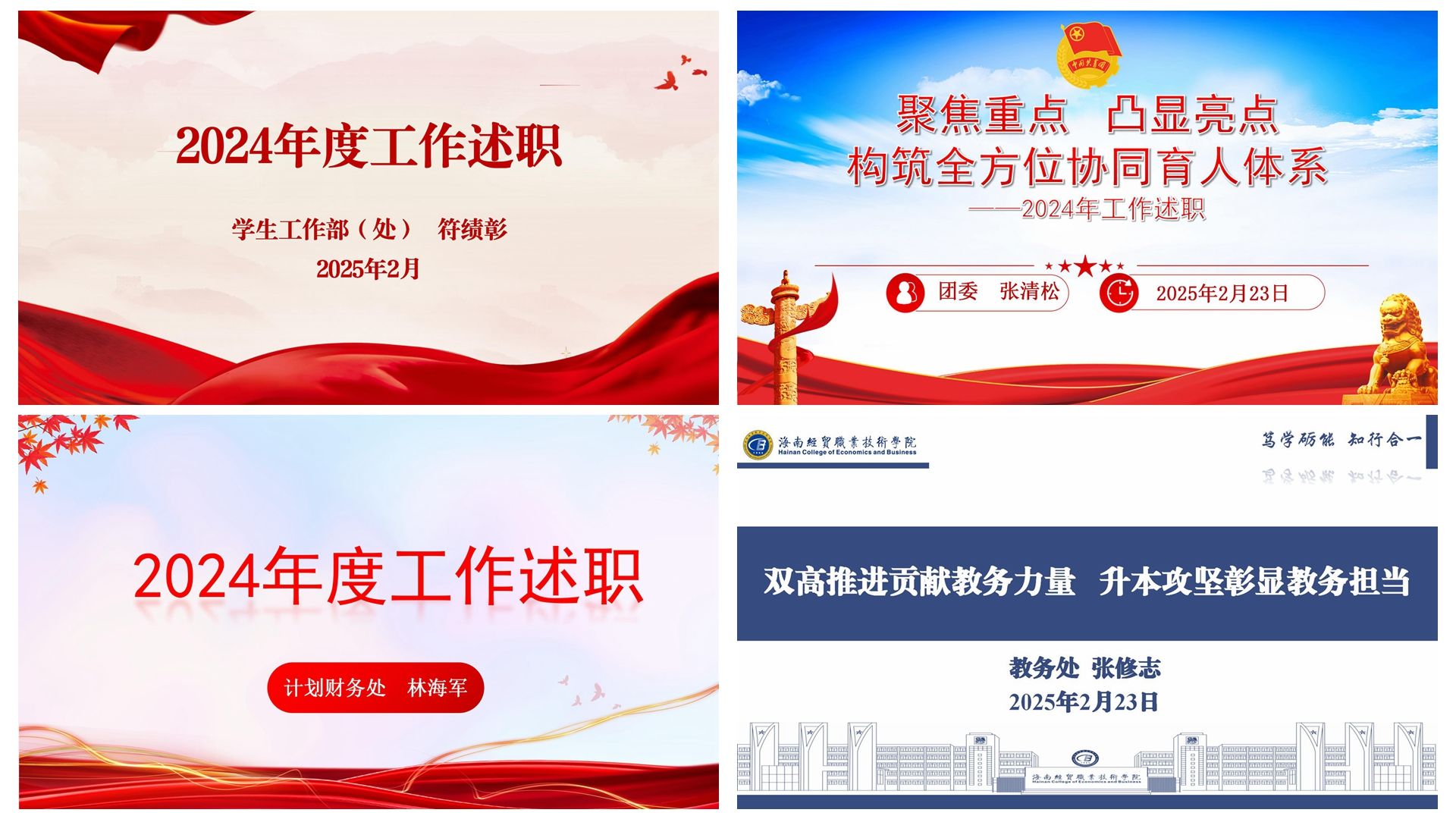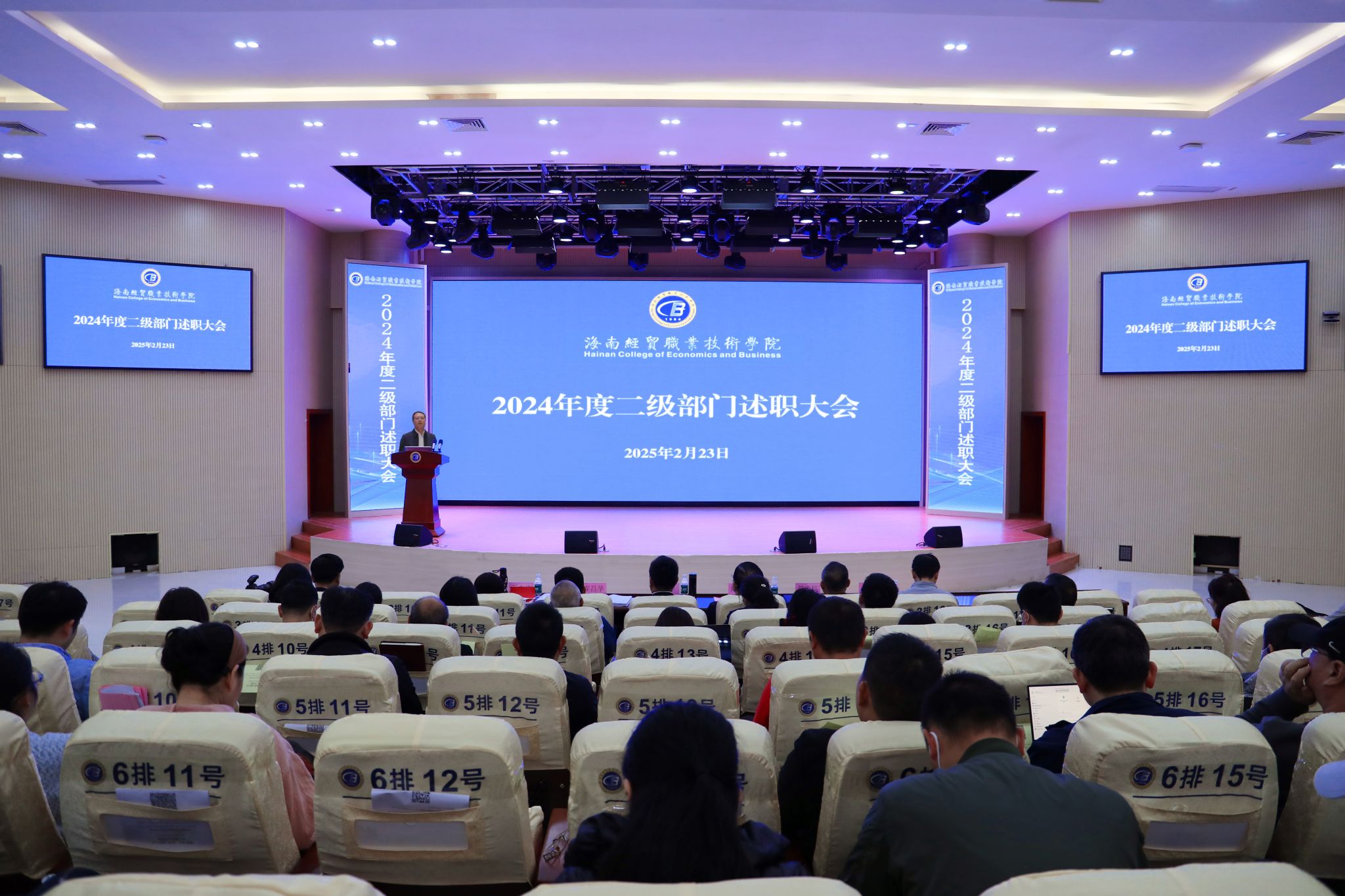 在二级部门(单位)述职大会上,学校19个机关部门、教辅单位主要负责人、10个二级学院院长或主持工作副院长分别进行述职,汇报了2024年的工作总体情况,交流了一年来的工作成果,并介绍本单位2025年度工作安排。各部门各单位充分展示成绩,研判形势,凝聚共识,共同谋划学校高质量发展。参会人员对二级部门(单位)负责人述职进行测评。