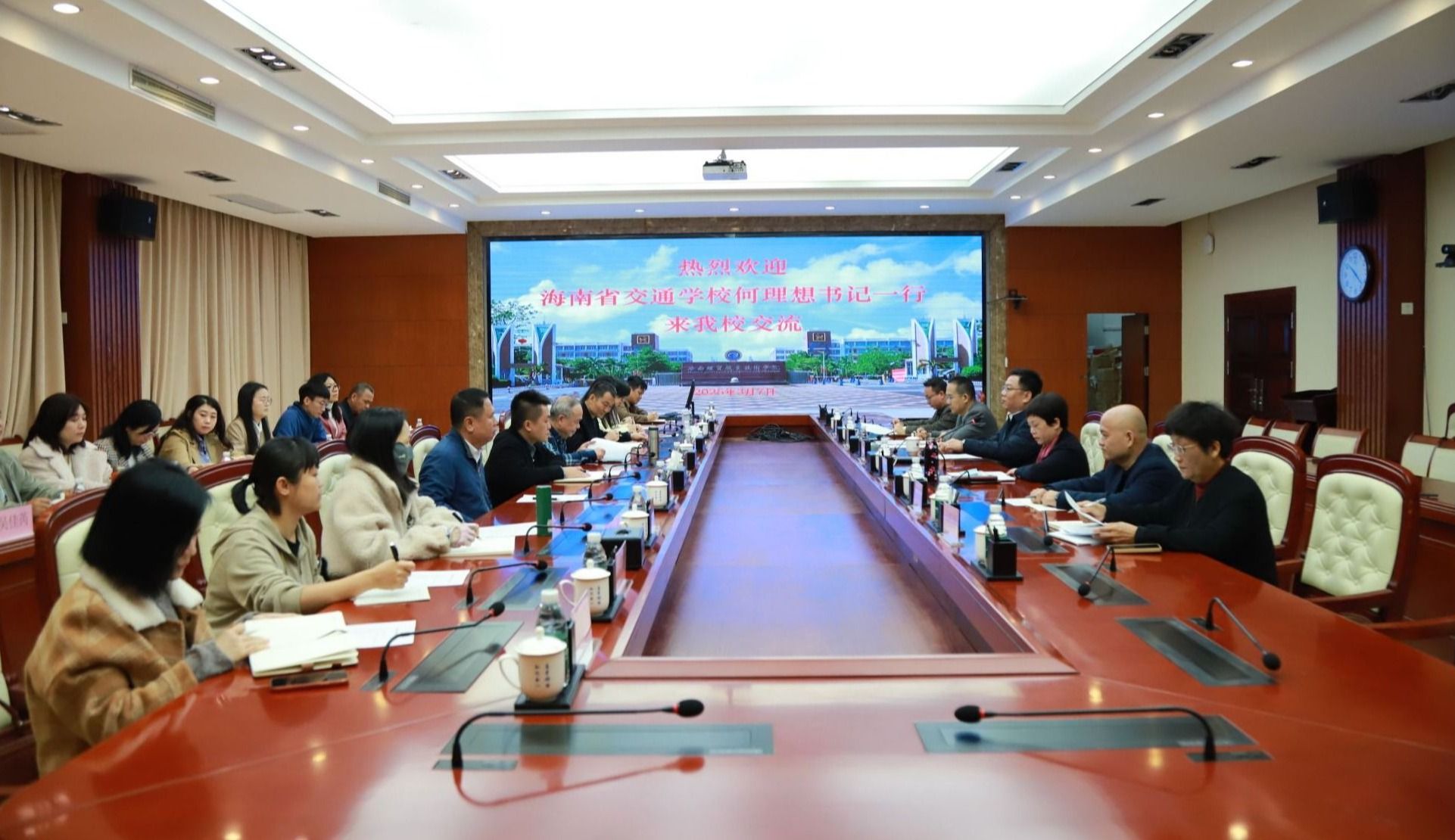 2025年3月7日,海南省交通学校党委书记何理想一行20人来到betway西汉姆联官网。就思政课程、课程思政、学生管理、心理健康教育等方面进行座谈交流。学校党委书记王华,党委委员、副校长万力维热情接待了海南省交通学校一行。