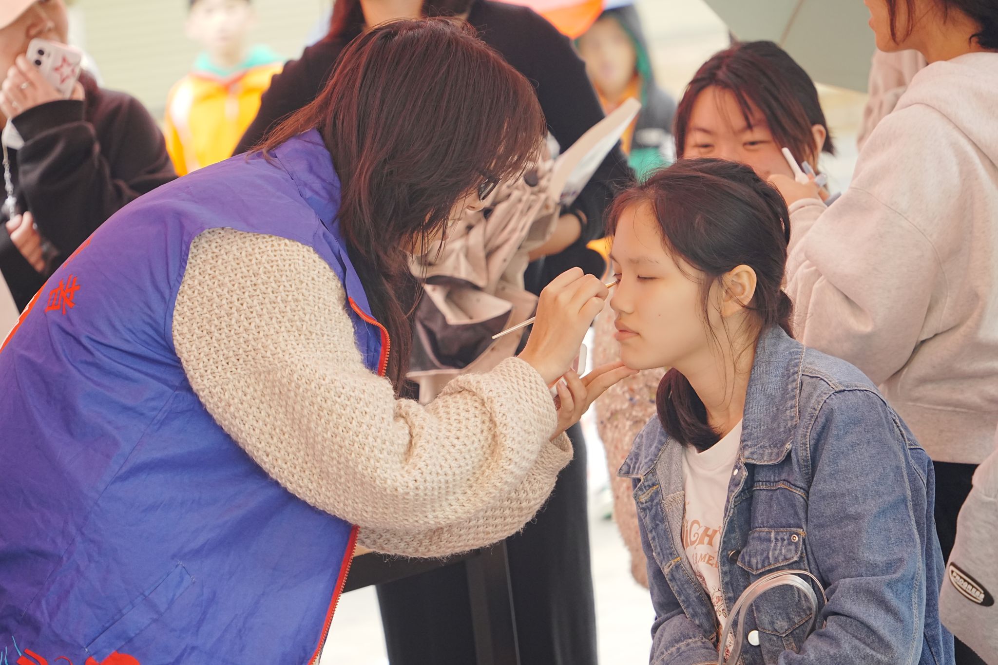 学校党委副书记、校长崔昌华在学生食堂为同学们送去亲切祝福,他勉励大家好好学习,与学校高质量发展同向同行,祝愿所有女同学们节日快乐。学生食堂前广场热闹非凡,大家在这里写祝福语、领取鲜花和食堂代金券。美妆社团的志愿者们为来往的女同学们发放化妆物品和工具,还设置了幸运抽奖环节,让大家惊喜连连。