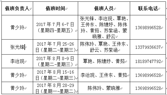 关于2017年暑假值班安排的通知