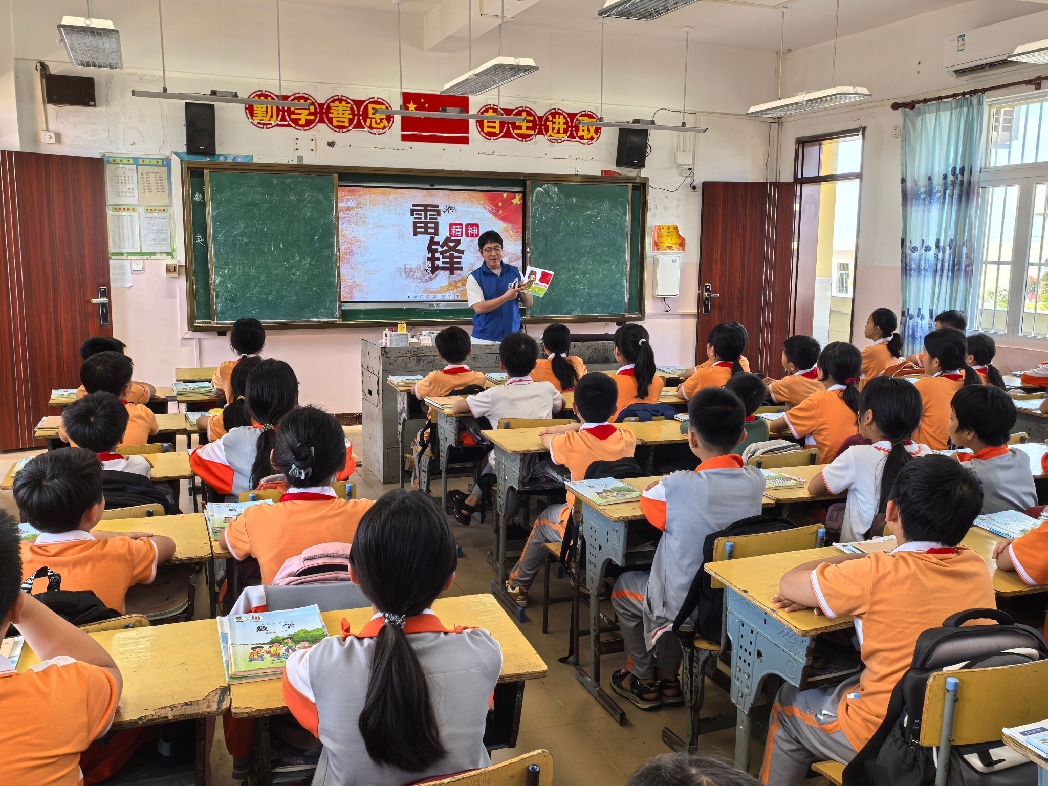 三月春风轻柔,雷锋精神在这温暖的季节里熠熠生辉。近日,机电与汽车工程学院团总支组织志愿者队伍前往海口市琼山区红旗镇红旗中心小学,开展了一场别开生面的“童心绘雷锋,精神永传行”主题支教活动。志愿者们与小朋友们携手,用五彩画笔与灵巧双手,共同描绘雷锋形象,用心感悟雷锋精神的深刻内涵。