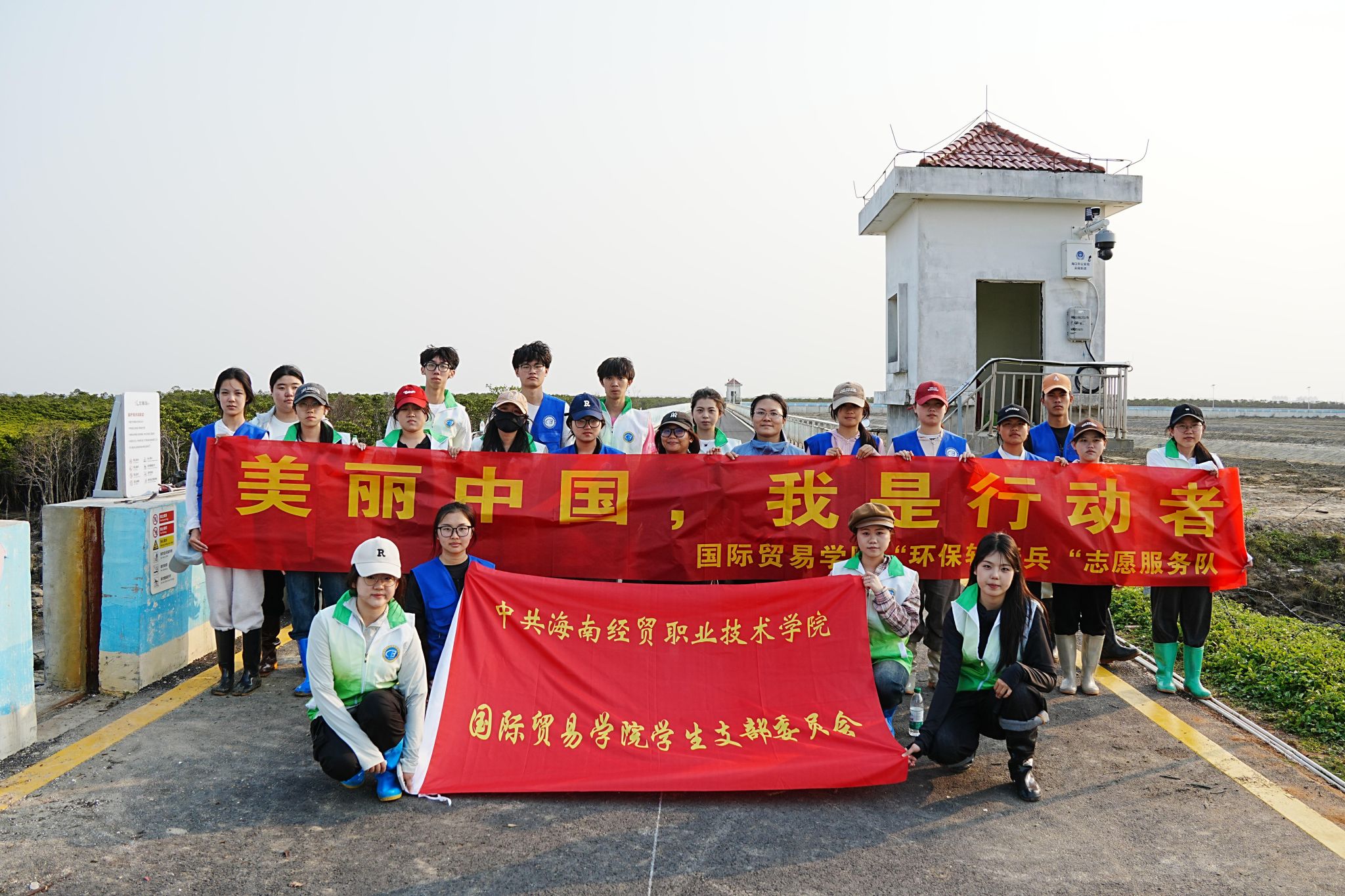 2025年3月25日,国际贸易学院学生党支部联合学院“环保轻骑兵”志愿服务队、海南智渔可持续科技发展研究中心,前往海口市演丰镇北港村开展“美丽中国,我是行动者”主题党团日活动,深入践行习近平生态文明思想,提升大学生环保意识和社会责任感。20名国际贸易学院学生党员、团员及青年志愿者参加活动。