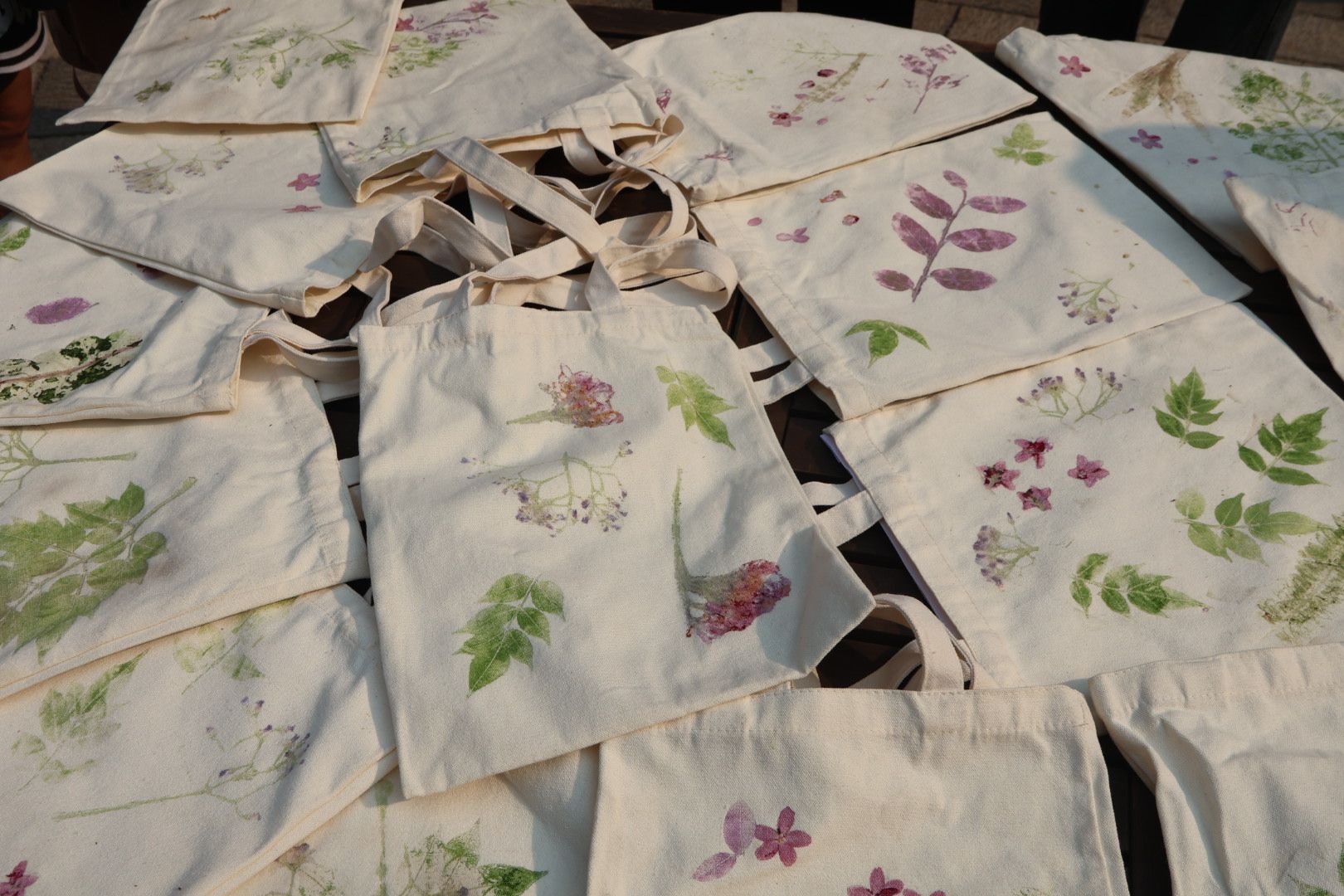 粘贴、捶打、按压……同学们兴致勃勃地进行非物质文化遗产“植物拓染”技艺操作,将形态各异的叶片、花朵覆于帆布包上,形成一幅幅充满自然意趣的文创作品。看着自己亲手制作的作品,林名广同学感慨:“以前觉得非遗离我们很遥远,亲手体验后才发现,虽然费时费力,但每一道工序都是匠心的沉淀。”