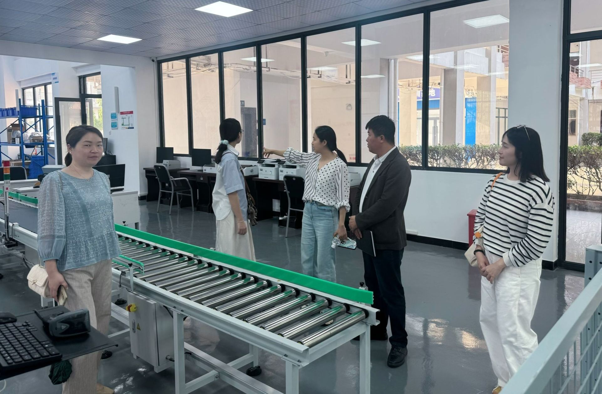 海软智慧旅游学院一行参观了国际贸易学院数字贸易生产性实训中心、智能客服生产性实训中心、智慧供应链生产性实训中心和学生自主创业智慧无人超市项目,了解校内实训基地的建设和使用情况。