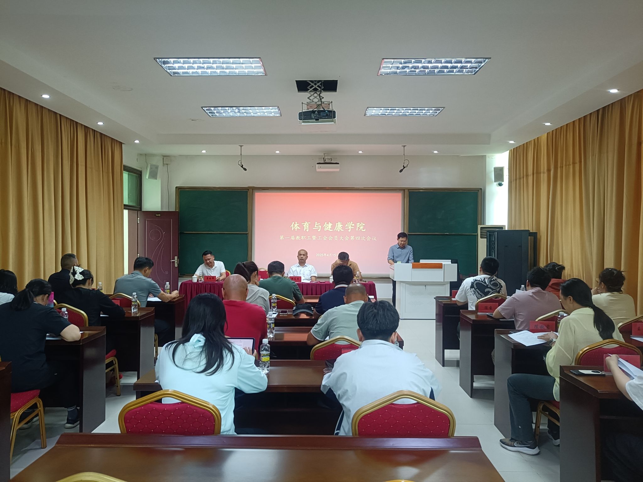 2025年4月15日,体育与健康学院召开第一届教职工暨工会会员大会第四次会议第一届教职工暨工会会员大会第四次会议。学校党委委员、副校长陈修焕出席会议并讲话。