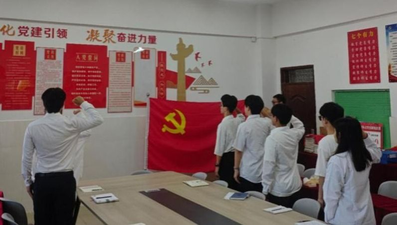 党课结束后,全体毕业生党员面向鲜红党旗庄严宣誓,重温入党初心,砥砺使命担当。