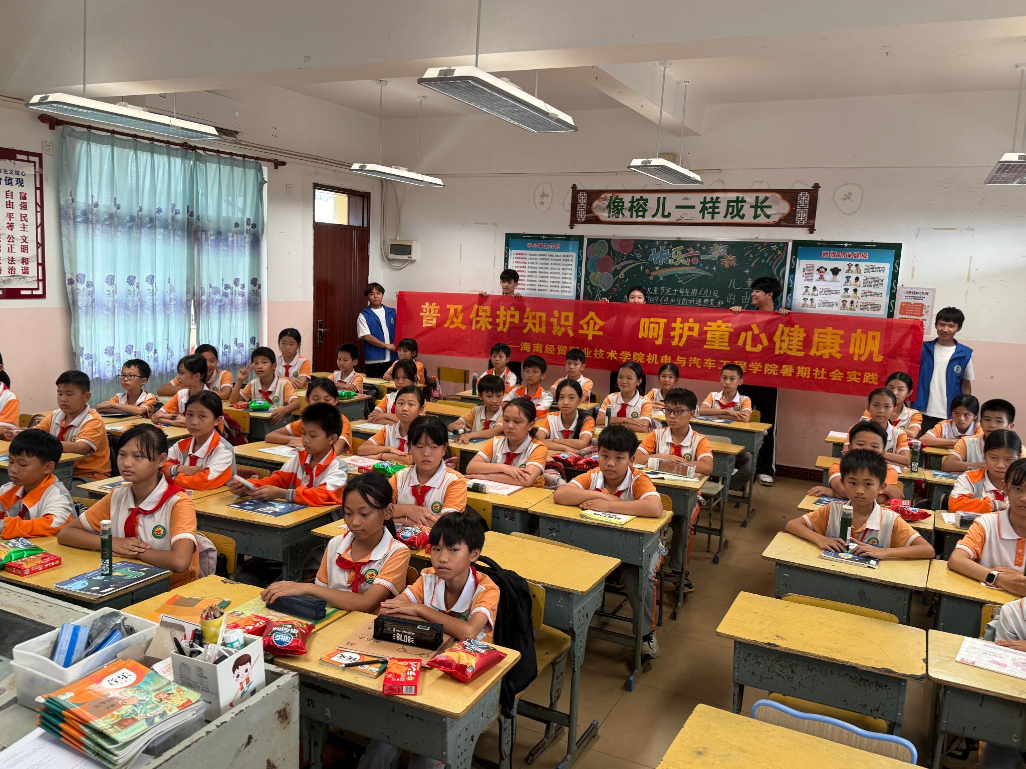 7月1日,机电与汽车工程学院“守护童年” 暑期社会实践团走进海口市琼山区红旗镇中心小学,为学生开展未成年人安全教育活动,以青春力量护航童心成长。