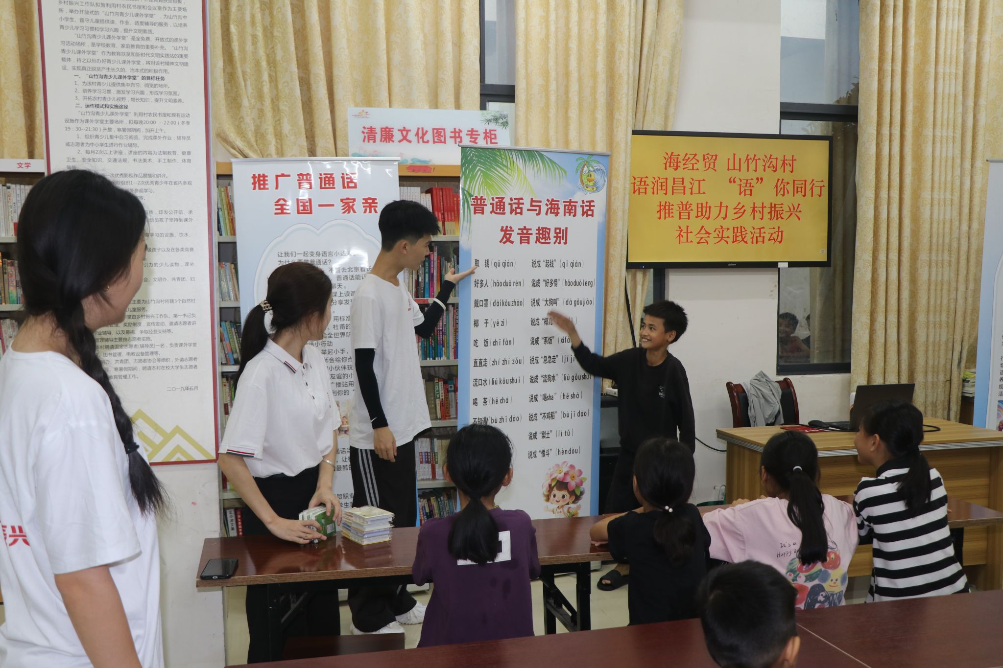 推广普通话与使用规范字,是时代发展的必然要求,更是文明进步的重要标志。此次活动中,队员们深刻体会到普通话不仅能搭建沟通桥梁、提升交流效率,更能为乡村注入知识活力——让村里的孩子通过语言看世界,让村民借助规范表达学习金融知识、理解海南自贸港政策,切实为海南乡村振兴夯实文化根基。