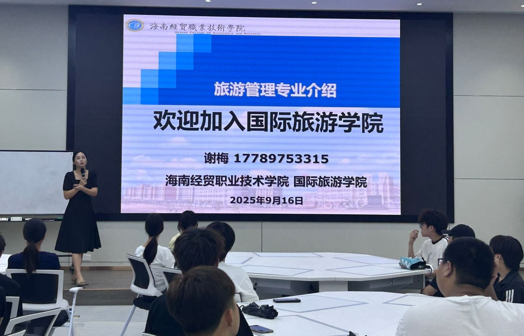 2025年9月16日,国际旅游学院旅游管理与智慧旅游技术应用专业举行2025级新生专业介绍会。特聘教师王昆欣教授为同学们作主题讲座“新时代旅游发展的新趋势、新变革、新业态”。