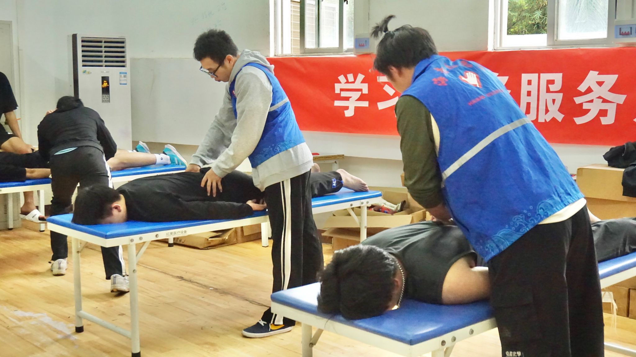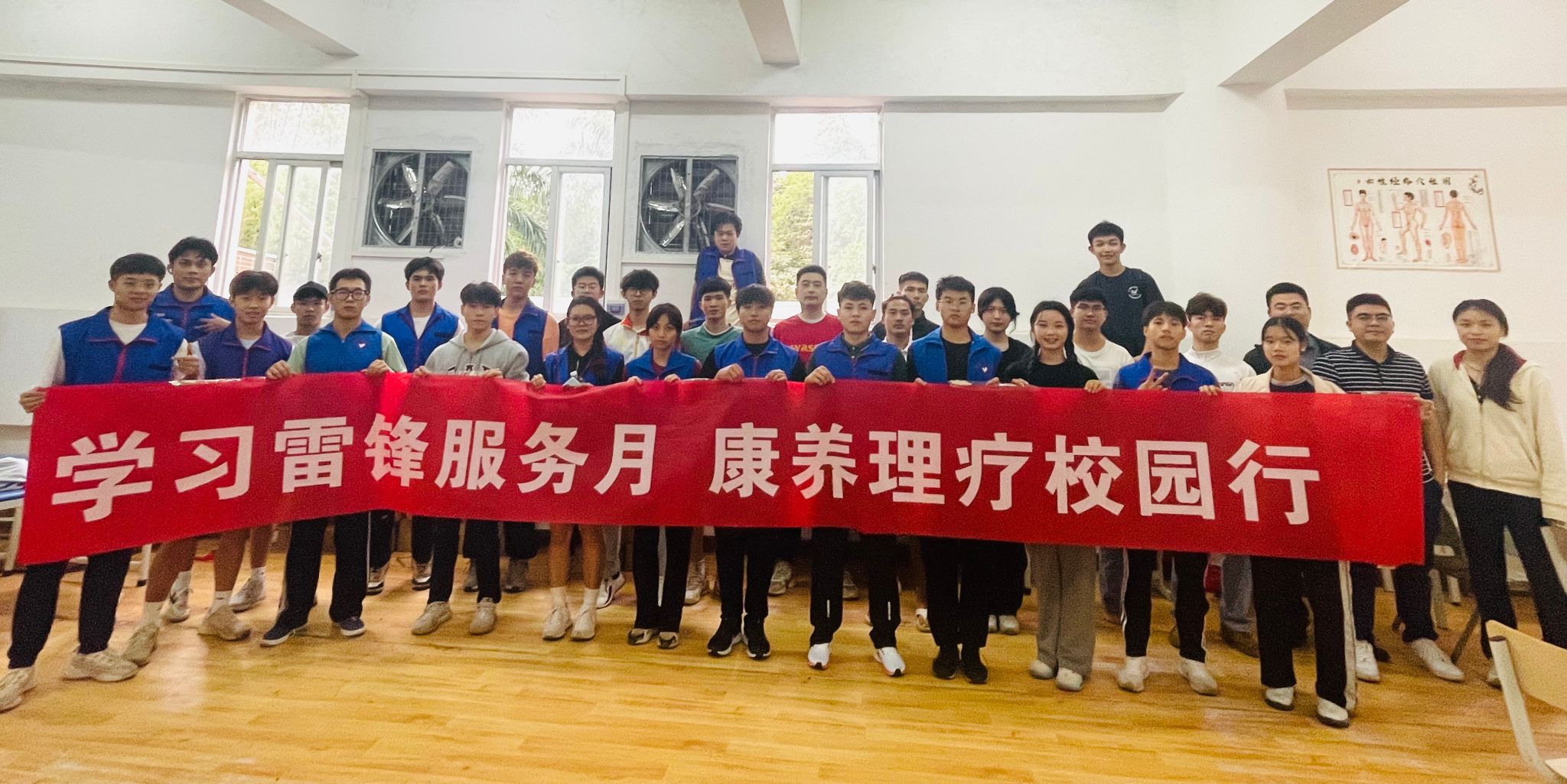2024年3月12日,体育与健康学院青年志愿者协会在学校体育馆开展“学习雷锋服务月 康养理疗校园行”主题活动,免费为师生提供推拿按摩、疏通经络等理疗服务,深入开展健康知识宣传,提升师生身体健康水平。