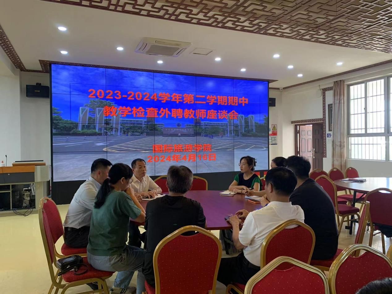 近日,国际旅游学院召开外聘兼职教师座谈会,强化外聘兼职教师队伍师德师风建设,充分发挥外聘兼职教师在人才培养中的作用,提高教育教学质量。