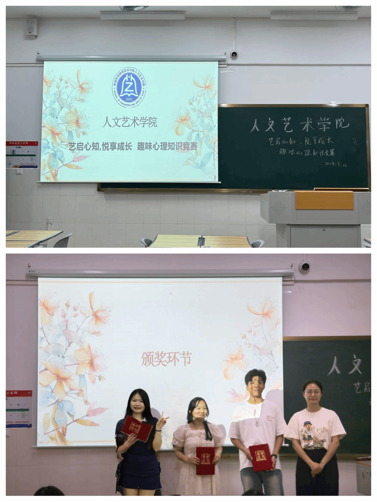 5月12日,“艺启心知,悦享成长”趣味心理知识竞赛举办。竞赛分为必答题和抢答题两部分,题目涵盖心理学、心理健康、心理咨询等领域知识。选手们信心十足,上演了一场精彩纷呈的知识比拼,体现了他们丰富的知识储备和当代大学生斗志昂扬的精神风貌。