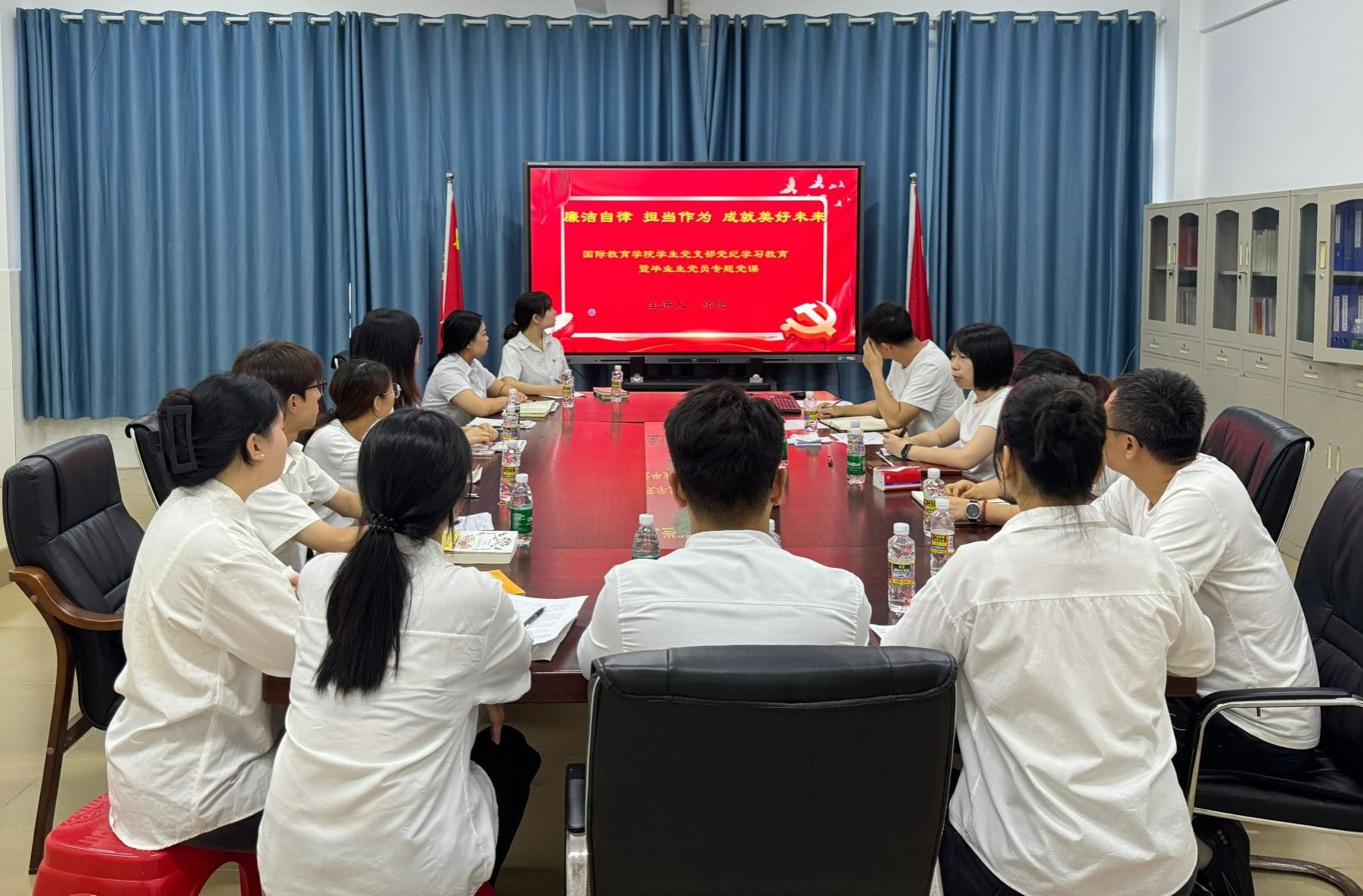 近日,国际教育学院党总支副书记、学生党支部书记郑艳以“廉洁自律 担当作为 成就美好未来”为主题,为2024届毕业生党员讲授毕业前的“最后一次党课”。国际教育学院学生党支部全体师生党员共同聆听此次党课。