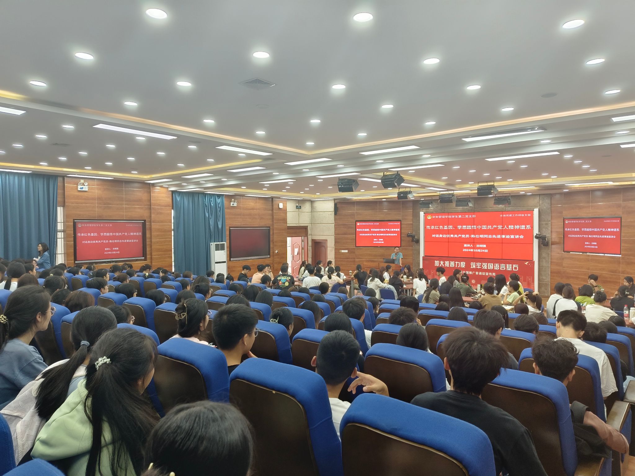 2024年10月24日,财务管理学院学生第二党支部开展“传承红色基因、学思践悟中国共产党人精神谱系”宣讲启动仪式。200余名入党积极分子和团员参加宣讲会。
