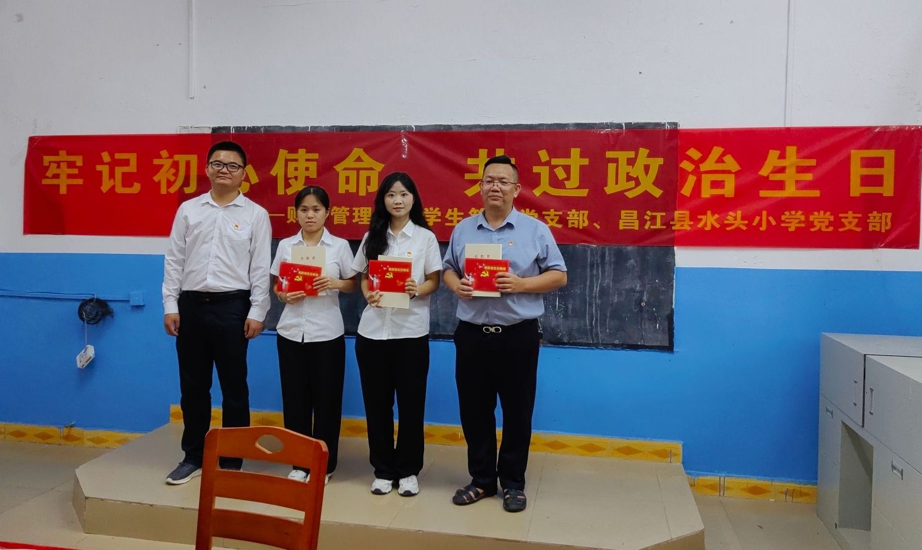 2024年11月19日,betway西汉姆联官网财务管理学院学生第二党支部和昌江黎族自治县石碌镇水头小学党支部共过政治生日,通过重温入党誓词、集中学习、分享感悟、赠送生日贺卡和《论教育》生日礼物,引导党员进一步淬炼党性修养、砥砺初心使命。