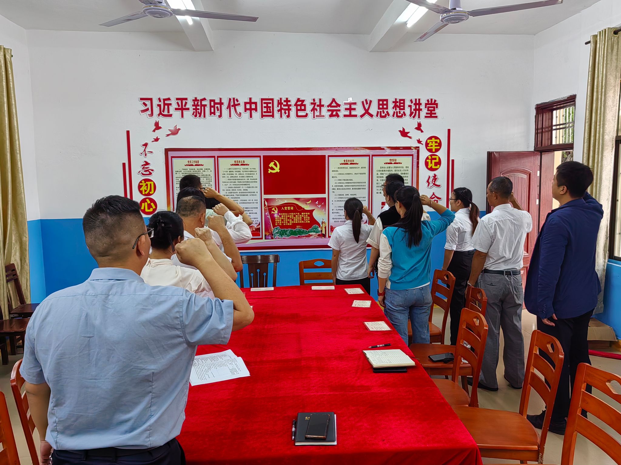 “我志愿加入中国共产党,拥护党的纲领,遵守党的章程……”活动中,面向鲜红的党旗,两个支部党员高举右拳,庄严宣誓。一双双坚定不移的眼神,一句句铿锵有力的誓言,全体党员仿佛又回到了第一次入党时的情景。