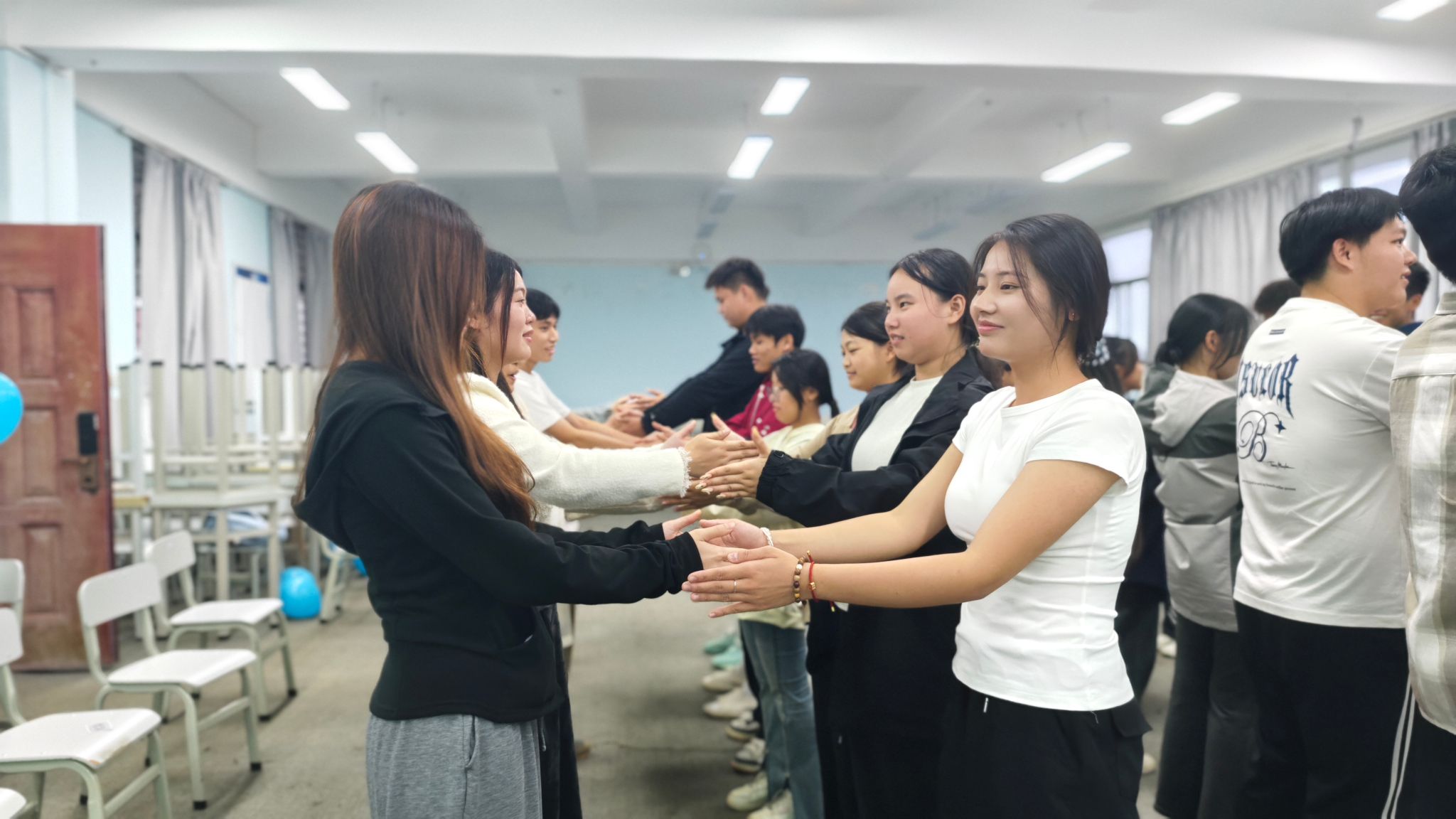 活动紧密围绕“新体验,心成长”主题,匠心独运地设计了“信任背倒”“合力取水”等一系列趣味盎然、互动满满的团队协作游戏项目。学生干部们置身于轻松融洽的氛围之中,踊跃参与、全情投入,不仅加深了对彼此的了解,还有效促进了同学间的信任与默契。