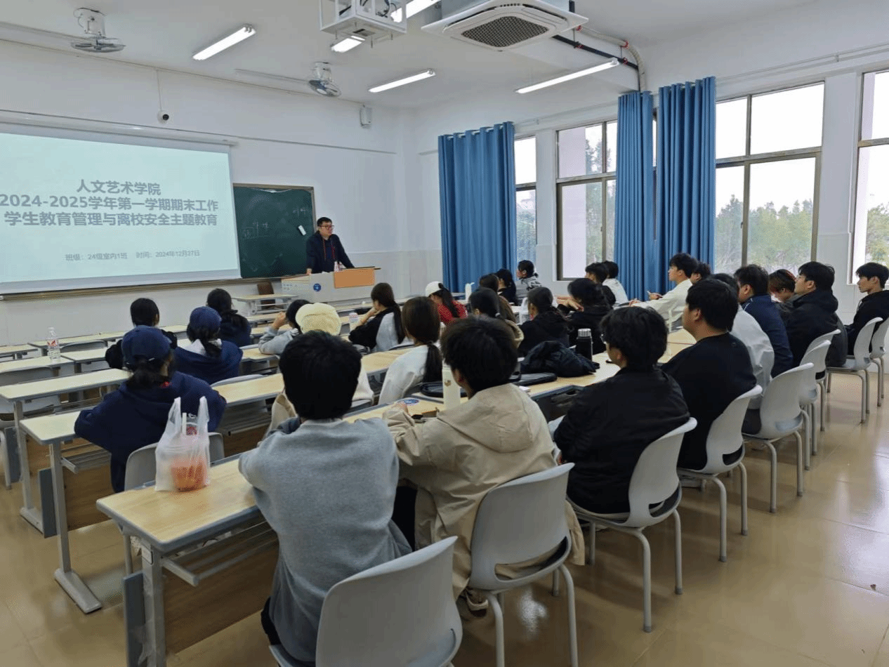 近日,人文艺术学院辅导员及班主任深入各班级,召开期末诚信考试与寒假离校安全教育主题班会,共31个班级865名学生参加。