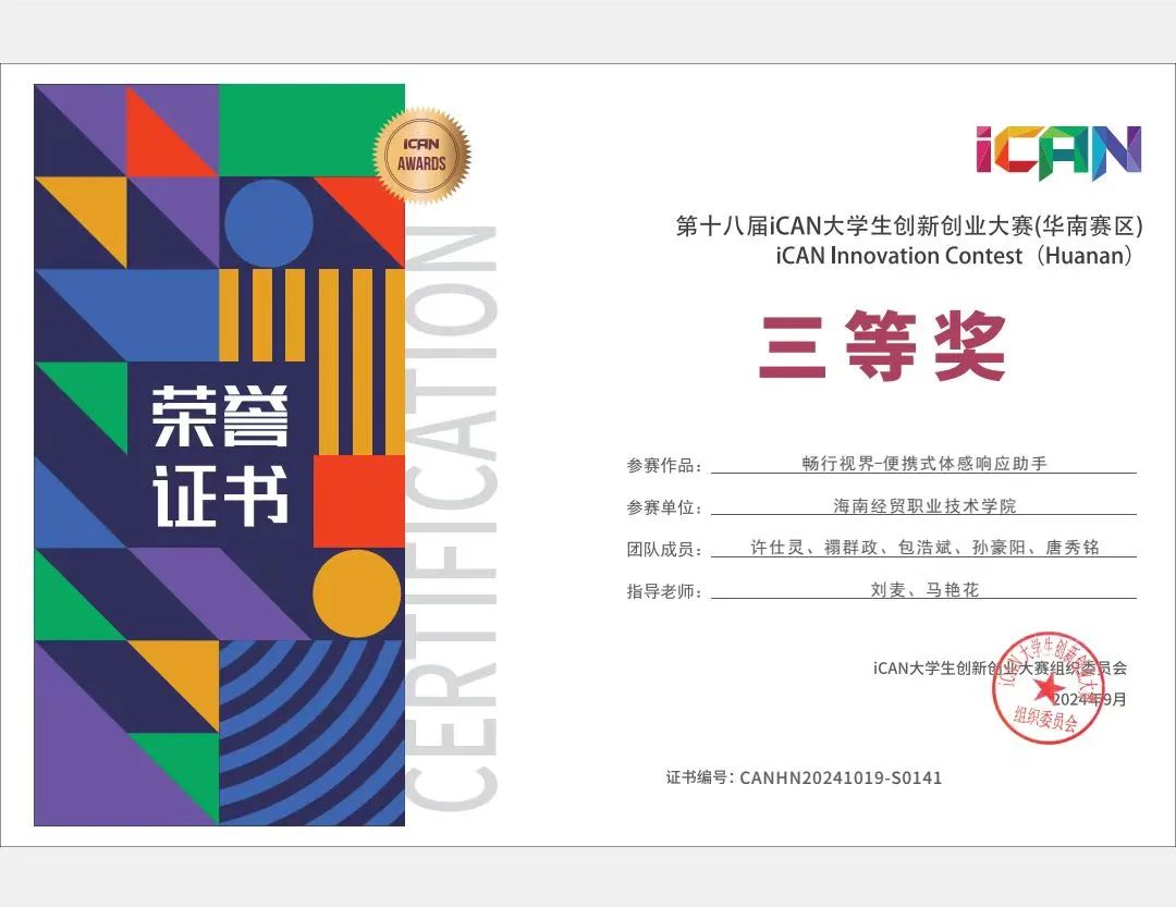 在第六届国际青年人工智能大赛探索者全地形运载机器人任务挑战赛(东部赛区)和第十八届 ICNA 大学生创新创业大赛(华南赛区)中,许仕灵与小伙伴们并肩作战,默契配合,同样收获了三等奖的优异成绩。两年间,他累计获国家级荣誉2项、省级荣誉7项、校级荣誉12项。抽屉里那一张张涂满修改痕迹的设计图,电脑里那一组组存储的实验数据,见证着他对专业的赤诚热爱,也彰显着他用专业技能为国家科技发展添砖加瓦的决心。“毕业后我想从事智能控制方面的工作,这些竞赛经历为我打下坚实的基础,也让我更有信心面对未来的挑战”,许仕灵说。