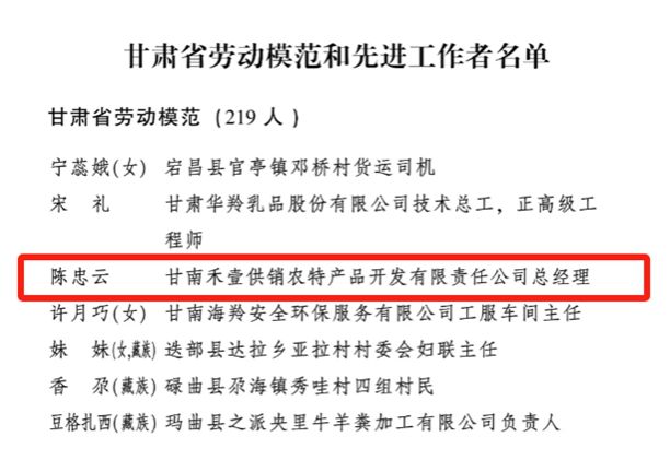 2019年4月,陈忠云创建甘南禾壹供销农特产品开发有限责任公司,这是一家集农畜产品代理销售、农畜产品开发、惠农服务为一体的综合性企业。2020年,禾壹公司主导建设甘南农特产品展销交易中心,该中心被甘南州乡村振兴局认定为甘南州消费扶贫生活馆,被甘南州总工会认定为“消费扶贫产品定点采购单位”,并陆续在兰州等地投资了3家特产直营门店。