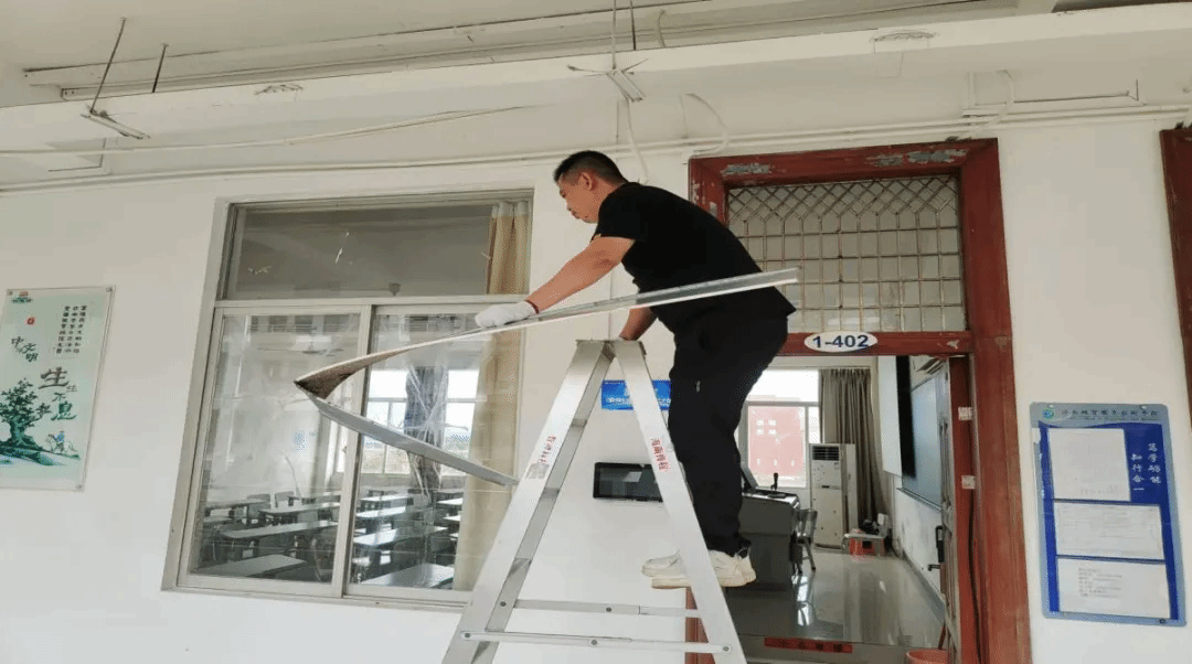 9月7日,资产管理人员及时巡查全校教学场地受损情况,主动扶正、整理、修复各楼层吹倒的设备设施,协调人员加开排水口,避免实训室因天气原因二次受损。校外同志在通讯中断没有任何信息的情况下主动返校,对分管区域损失情况进行检查登记,对存在次生灾害隐患的门窗、玻璃、桥架进行清理和加固。在清理加固过程中,设备科王川浩同志手被划伤,在医务室简单处理后又投入到灾后恢复工作中。