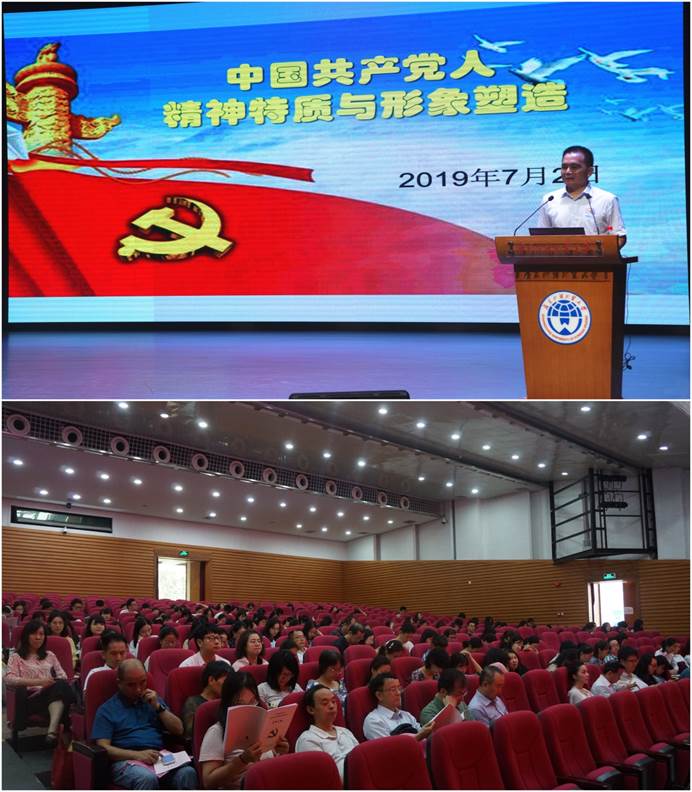 本网讯 2019年7月2日上午,英文学院党委在北校区第六教学楼报告厅举办了《中国共产党人精神特质与形象塑造》专题党课,由学院党委书记林绍雄同志主讲。