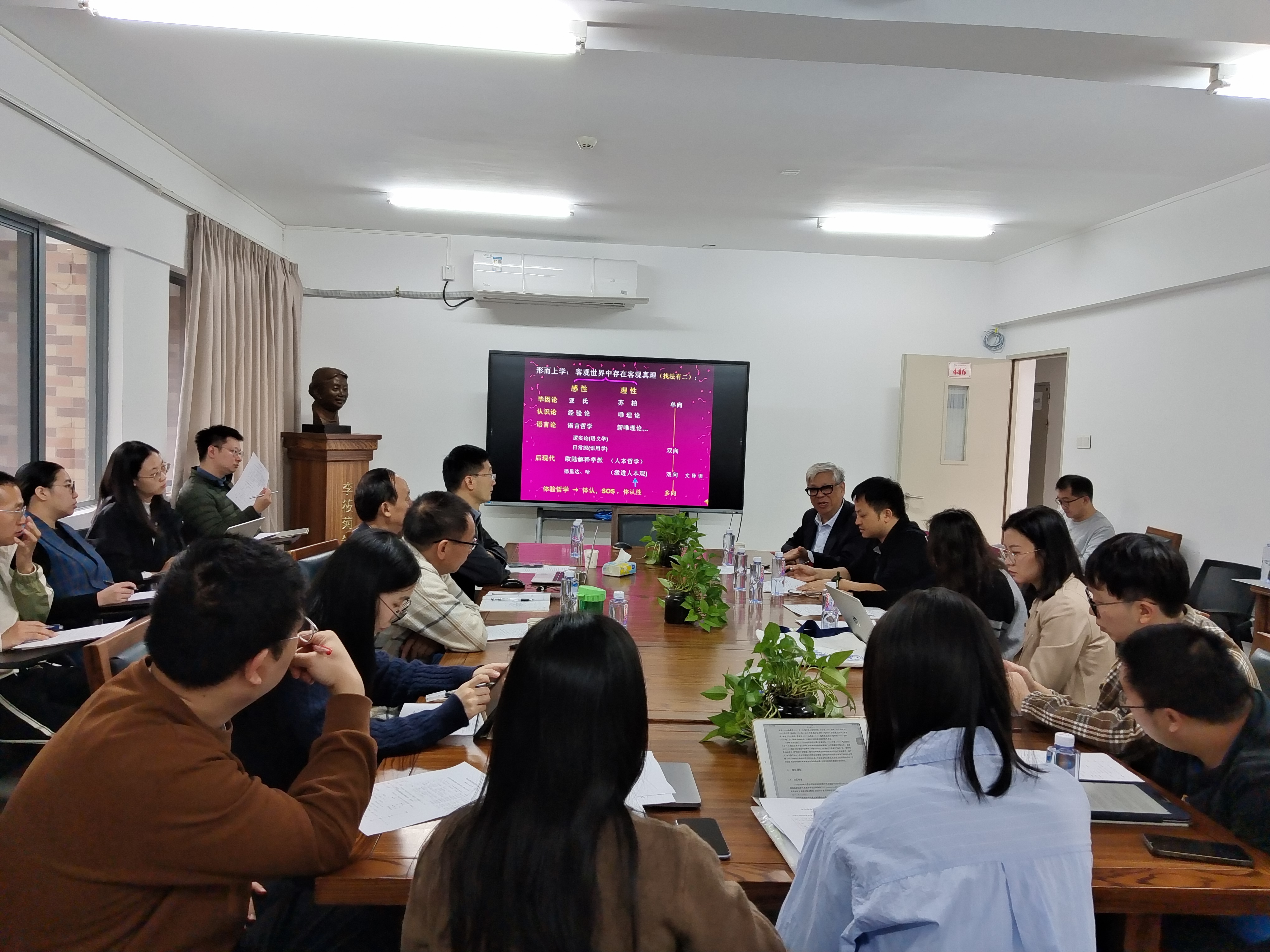 讲座持续了近三个小时,王教授的讲解生动且富有深度。在随后的互动问答环节,王教授耐心解答了专家与学生们的提问,与师生展开了热烈的讨论和交流。最后,李成团教授作了总结发言,充分肯定了王教授提出的植根于中国本土的体认语言学理论,认为其不仅具有创新性,又极具实践性,为学术研究和论文写作提供了宝贵的指导。在发展中国特色认知语言学理论方面,王教授的精神值得我们每个人学习。至此,本次讲座圆满结束。